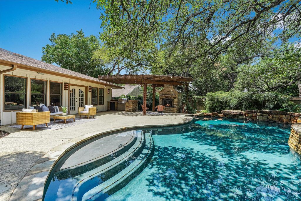 Set on a spacious 0.35-acre lot in the heart of Tarrytown, this single-story residence offers more than 3,000 sq. ft. of living space designed for comfort and flexibility. Inside, you'll find multiple living areas, three full bathrooms, and classic details like two fireplaces that create warmth and character. The home's generous floor plan opens seamlessly to the outdoors, where a covered patio and pool make the backyard a true retreat for entertaining or relaxing. With its one-level layout, attached garage, and timeless mid-century construction, this property provides an exceptional foundation for both immediate enjoyment and future vision. Plans from 787 Design Lab for a 5,200 sqft home not included with price.