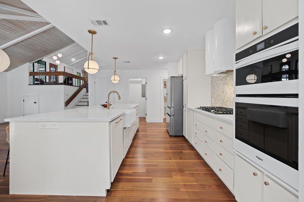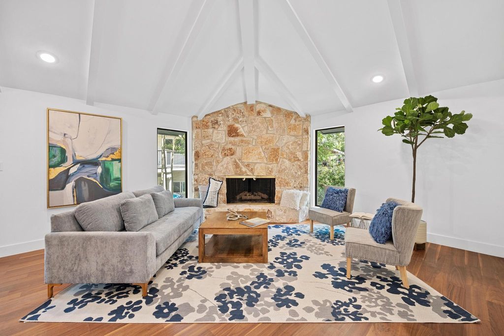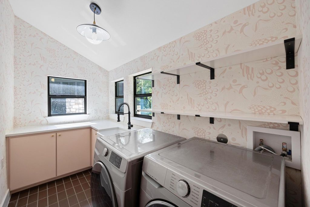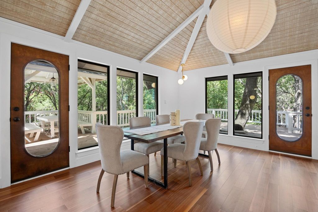 Spectacular modern gem in Northwest Hills! Set on nearly half an acre, this home is a tranquil haven, backed by a meandering wet-weather creek and a lush expanse of green space. Prime location just blocks from all the shops and eateries along Far West with easy access to Mopac and just minutes from Downtown and the Tech Corridor. Coveted AISD schools include Doss Murchison and Anderson HS. This sprawling contemporary masterpiece stretches out across a multi-level floor plan with plenty of room to stretch out, entertain, relax and rejuvenate, and get lost in your backyard oasis. Step inside and discover a world of elegance and sophistication, where walnut floors guide you through expansive living spaces. Featuring 2 living areas, 3 dining spaces, 4 bedrooms, 3.5 bathrooms, a home office, a library, a chic bar, and an expansive bonus room ideal for an entertaining. At the heart of the home, the professional gourmet island kitchen is a focal point of culinary artistry. Featuring an impressive 11-foot island, a bespoke vent hood, double ovens, a gas cooktop, quartz countertops, vintage terrazzo tiled backsplash, and exquisite Hinkley designer lighting. While the home boasts modernity, it has lovingly preserved its authentic vintage elements, including the original mid-century modern doors, an indoor sauna, a wine cellar, and vintage fire clay brick floors. A mix of color, texture, and pattern seamlessly weaves through the home, evident in the captivating Zellige tile, whimsical wallpapers, bold pattern clay tile floors, and walls adorned with honed limestone and natural wood. Yet, the true gem of this property lies outdoors"”a colossal, tiered deck offering breathtaking views of the serene grounds. This stunning backyard features two charming gazebos nestled amidst the lush parklike lawns. Enjoy the serenity of nature in this beautifully landscaped retreat. Contact the listing agent to schedule your private tour today!