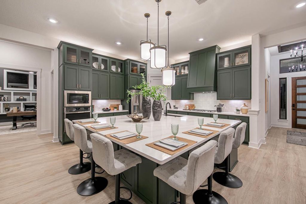 This stunning single-story home delivers show-stopping design with unbeatable functionality. With just over 3,200 square feet, the Kimberly features 4 spacious bedrooms, 3.5 bathrooms, a private study, a formal dining room, and a versatile game room"”perfect for everyday living and entertaining alike. Step into the heart of the home: an open-concept kitchen that's truly a chef's dream. The oversized island makes an unforgettable first impression, offering the ideal spot to gather, prep, and host. Paired with an abundance of cabinetry, there's no shortage of storage for all your favorite gadgets and gourmet essentials. Soaring vaulted ceilings elevate the family room, creating an airy and inviting space that flows seamlessly into your covered outdoor living area"”bringing the indoors out and perfect for relaxing evenings or weekend get-togethers. HOME IS UNDER CONSTRUCTION, est. FALL completion. SOME PHOTOS ARE REPRESENTATIVE of the floorplan**