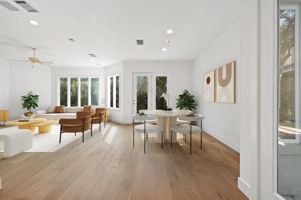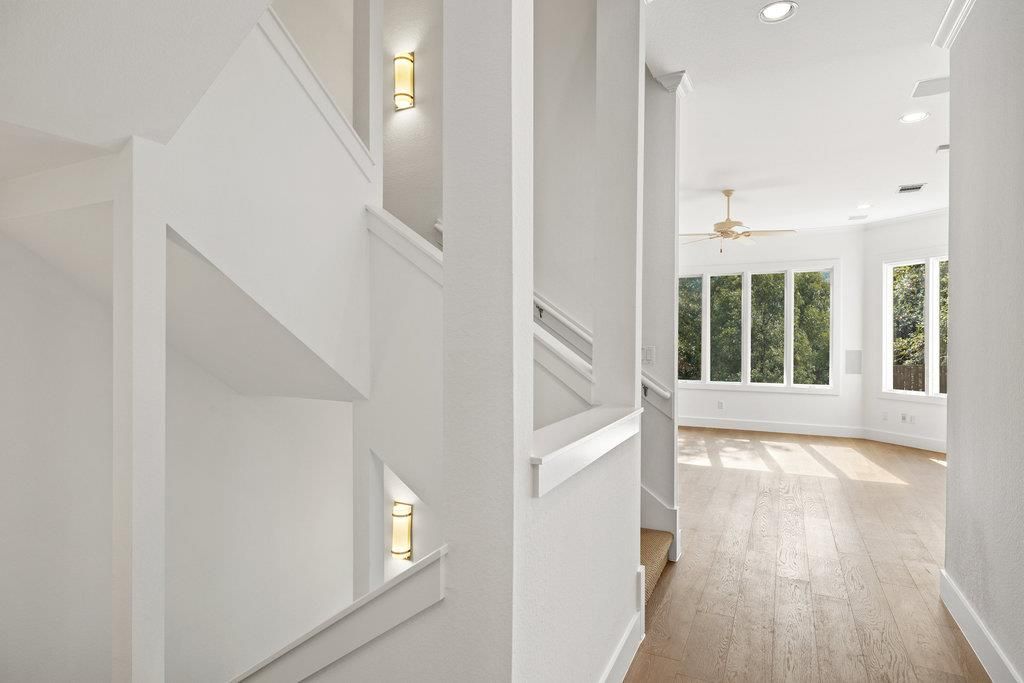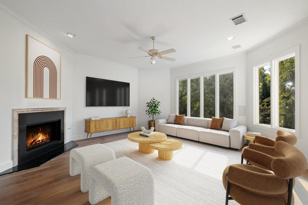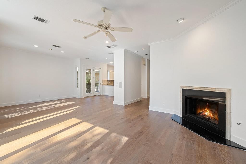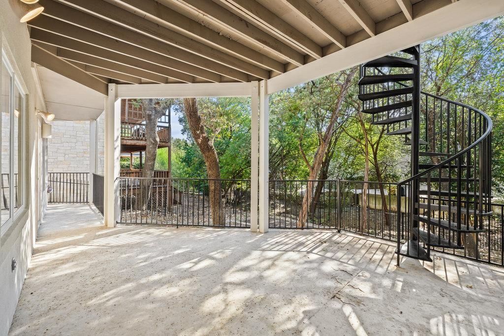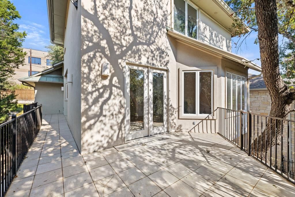 Live among the treetops in this exclusive gated enclave, nestled in the heart of Rollingwood and feeding into top-rated Eanes ISD schools. This beautifully updated residence offers the perfect blend of privacy, elegance, and convenience just minutes from Downtown Austin, Zilker Park, Barton Springs, and premier shopping and dining. Step inside to a bright, open floor plan with fresh interior paint and newly installed white oak wood flooring that spans the main living area. French doors open to an expansive wraparound terrace, perfect for morning coffee or sunset entertaining, complete with a spiral staircase leading to the serene, tree-lined backyard and lower covered patio. The spacious living room features a cozy fireplace and flows seamlessly into the dining area and kitchen, which boasts granite countertops, stainless steel appliances, a peninsula with bar seating, and a built-in wet bar. The versatile downstairs level includes two private bedrooms, two full baths, and a generous flex space ideal for a home office, playroom, gym, or game room. Upstairs, the primary suite is a true retreat with treetop views, its own fireplace, dual walk-in closets, and a luxurious ensuite bath with a soaking tub, walk-in shower, and double vanity. Located in a private, 22-home community designed for easy lock-and-leave living, this home offers a rare opportunity to enjoy low-maintenance luxury in one of Austin's most coveted neighborhoods.