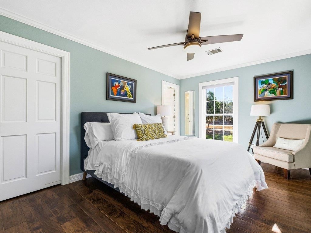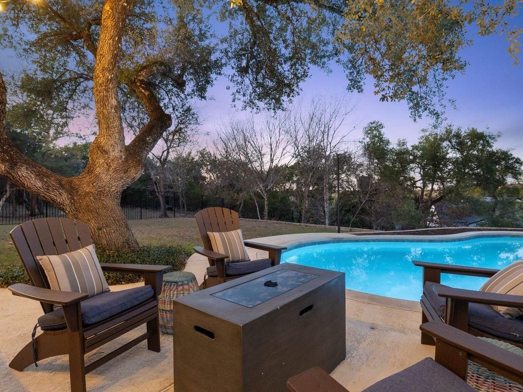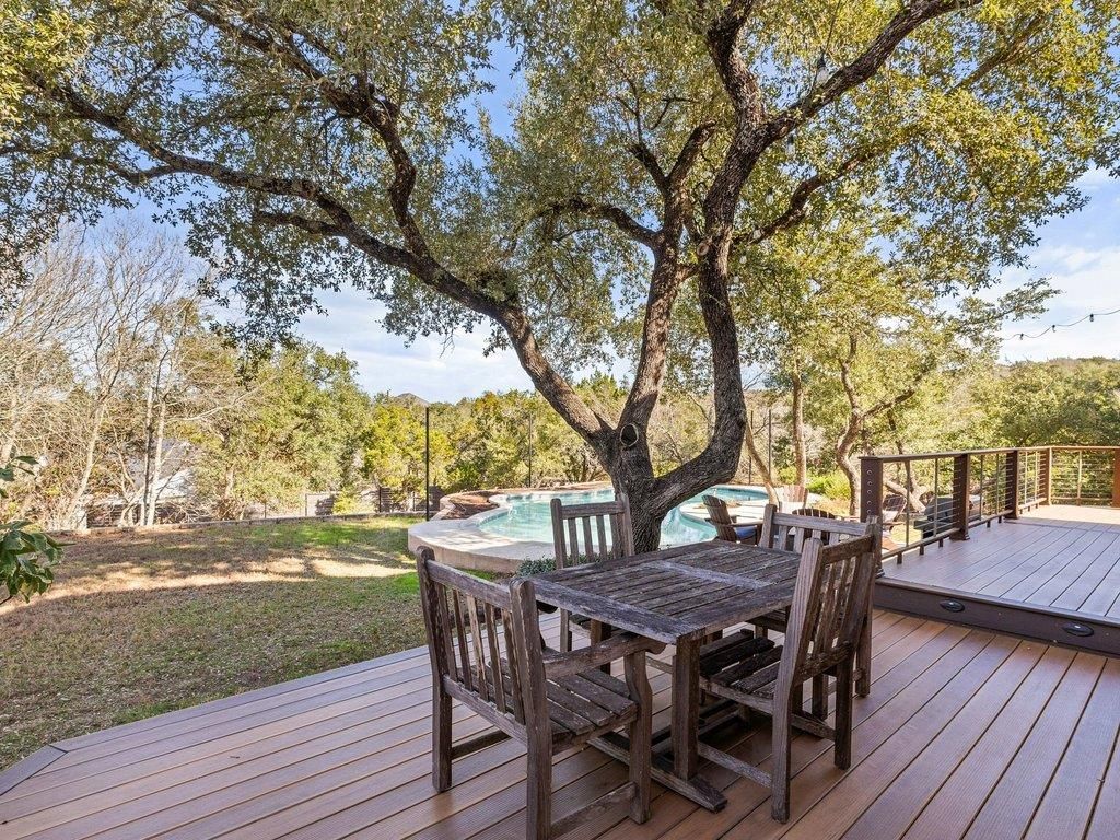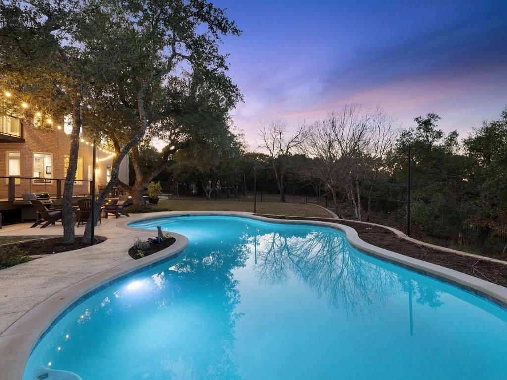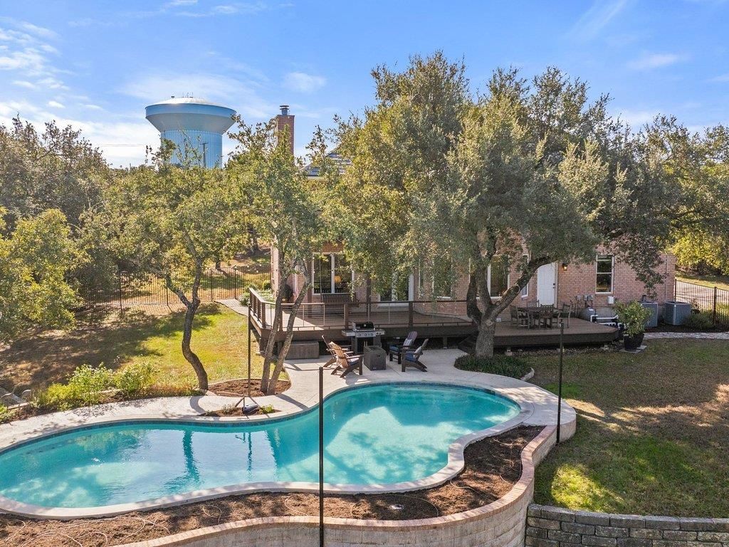USE SHOWINGTIME TO SCHEDULE SHOWINGS. QUESTIONS EMAIL LISTINGS@CAINREALTYGROUP.COM. GROUP TEXT 512-378-3590 & 512-743-0580. FOR WEEKENDS + EVENINGS PLEASE CONTACT LA2. SUBMIT OFFERS TO: OFFERS@CAINREALTYGROUP.COM Set on a peaceful stretch of Lewis Mountain Ranch, this home welcomes from the moment of arrival with mature landscaping, natural surroundings, and a sense of privacy enhanced by acreage and scenic Hill Country views. A stately oak tree frames the front approach, setting a calm, grounded tone before stepping inside. The living room is filled with natural light and oriented to capture views of the outdoors, creating a comfortable setting for everyday living or relaxed gatherings. Just beyond, the kitchen is thoughtfully laid out with generous workspace and easy connection to the main living areas, making it both functional and inviting. A dedicated media room offers a flexible space for entertainment, work, or creative use. The primary bedroom is positioned for privacy and comfort, featuring serene views and a well-appointed primary bathroom designed for daily ease and quiet retreat. Additional bedrooms are spacious and adaptable, offering options for guests, workspace, or hobbies. The backyard opens to expansive outdoor space with a pool, garden areas, and multiple spots to relax or entertain while enjoying long-range views and natural surroundings. The combination of privacy, open land, and thoughtful outdoor design creates a true Hill Country lifestyle setting. Located within Lewis Mountain Ranch, this home benefits from an amazing, supportive neighborhood atmosphere and convenient access to local favorites, including close proximity to the Salt Lick, while still feeling removed from the pace of the city.