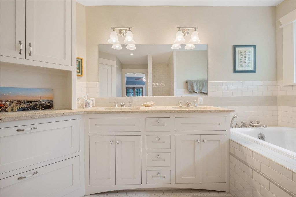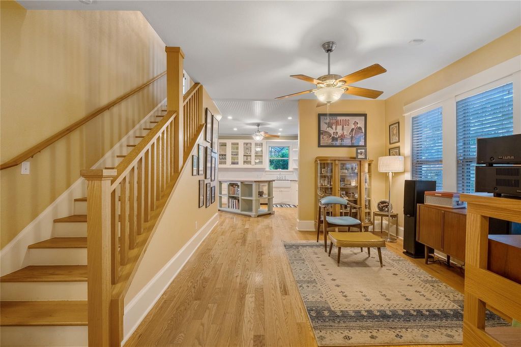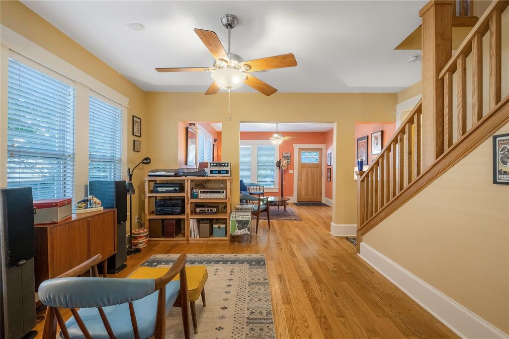 903 E 14th St. offers the best of both worlds: modern, open-concept living with vintage charm in a custom rebuilt & enlarged home on Austin's east side. With 3 bedrooms, 3 bathrooms, a separate office, multiple living/sitting rooms & resplendent porches, the home was taken down the studs, meticulously enlarged and updated in 2010 and has been lovingly cared for ever since. The large lot abuts tranquil Swede Hill Park, has no neighbors to the east, enjoys alley access (allowing for future ADU, garage apt) & features a lovely backyard with extensive plantings and healthy palm trees. The stunning upper 216 sf screened porch has composite flooring & custom drainage system. The 216 sf downstairs covered back porch with awnings, leads to the lush, fully fenced yard with multiple seating areas & 12x16 shed. The rebuild included: new kitchen; new bathrooms: new electric; new plumbing; hardwood floors throughout; double-pane windows; extensive custom shelving; 30-year shingle roof (w/ radiant barrier); foundation leveling & new piers; and an entire 2nd floor. The house has a light, airy floor plan imbued with the character of a 20th century bungalow. The home's 1st floor has been opened up and contains a large office; guest bedroom; full bathroom; front-of-house living room; sitting/flex/dining room; and large kitchen with butcher block island (w/ shelving), a large sun-filled dining area, custom glass-front cabinets, porcelain apron sink, large pantry and local granite countertops (from the same quarry as the Texas Capitol granite). Upstairs are two en-suite bedrooms with ample closets. The primary opens to the screened porch, its bathroom replete with large soaking tub, double vanity and walk-in shower. The light-flooded secondary BR has a vaulted ceiling and upper clerestory windows. Completing the second floor is a sitting/flex room (w/ custom bookcases), a cabinet-filled laundry room and two attic storage areas.