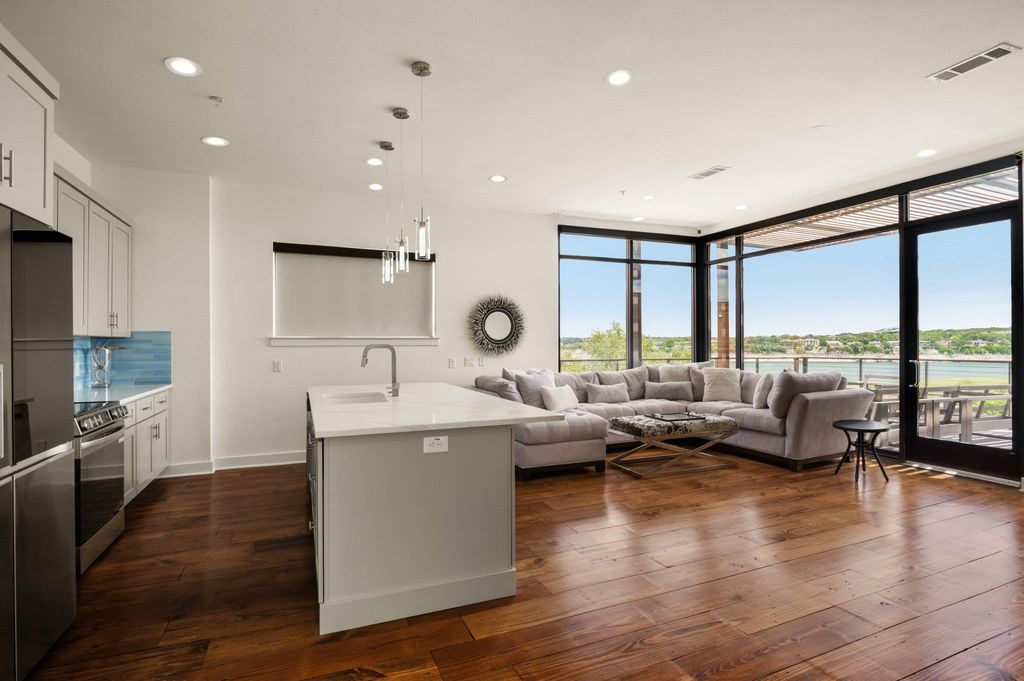 Welcome to Unit E201 at 1101 Ivean Pearson Dr, a rare single-level 2-bedroom, 2-bath condo in the coveted Waterstone community on Lake Travis. Spanning 1,470 square feet of refined interior living space plus a private 350-square-foot terrace, this residence perfectly balances elevated design with easy lakeside living. Step inside to a fully customized kitchen featuring quartz countertops, modern cabinetry, and high-end appliances, all thoughtfully arranged to capture breathtaking views of Lake Travis. The open-concept living area is bright and airy, enhanced by automated custom shades that make comfort effortless. Both bedrooms are generously sized, and each bathroom combines spa-like finishes with everyday functionality. The single-level layout creates a seamless flow from indoors to out, making it ideal for entertaining on the terrace or simply soaking in the panoramic lake views. As a Waterstone resident, you'll enjoy resort-style amenities including a lakeside pool and hot tub, covered outdoor kitchen and grill area, fire pits, and a private marina with day docks and jet ski slips. Whether you're looking for a full-time residence or a weekend escape, Unit E201 offers the best of modern design, lock-and-leave convenience, and unbeatable views, all just minutes from Lago Vista's golf course, local dining, and Hill Country trails.