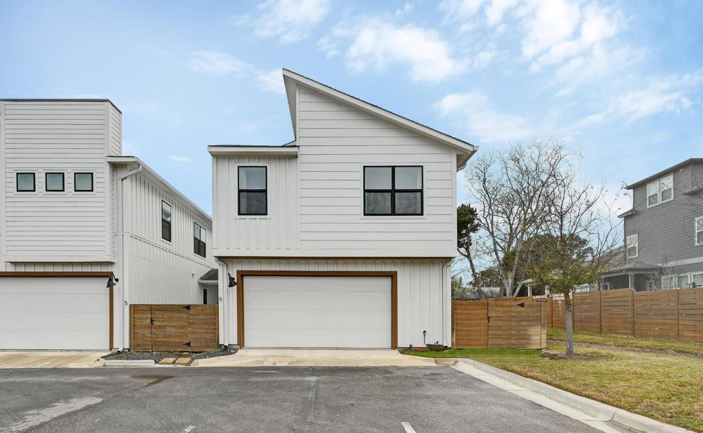LOCK-N-LEAVE and priced to sell! Being offered as a resale in a boutique South Austin community, this is the first opportunity to own one of the larger floor plans with a spacious private side yard and a two-car garage. This energy-efficient home features three bedrooms, two and a half bathrooms, and a second-level loft, providing flexible living space. The primary suite includes dual vanities, an expansive walk-in closet with ample storage, and a private water closet. The home has been meticulously maintained and includes an active pest control contract for added peace of mind. Updated epoxy flooring in the garage. Cooper's Square is an intimate community of just 30 residences and previously sold out prior to construction. Residents enjoy a dedicated dog park and a centrally located community gathering space. Unit Six is a premium homesite offering enhanced privacy with its oversized side yard. Ideally suited for a first-time homebuyer, investor, or anyone seeking low-maintenance living in the heart of Austin.