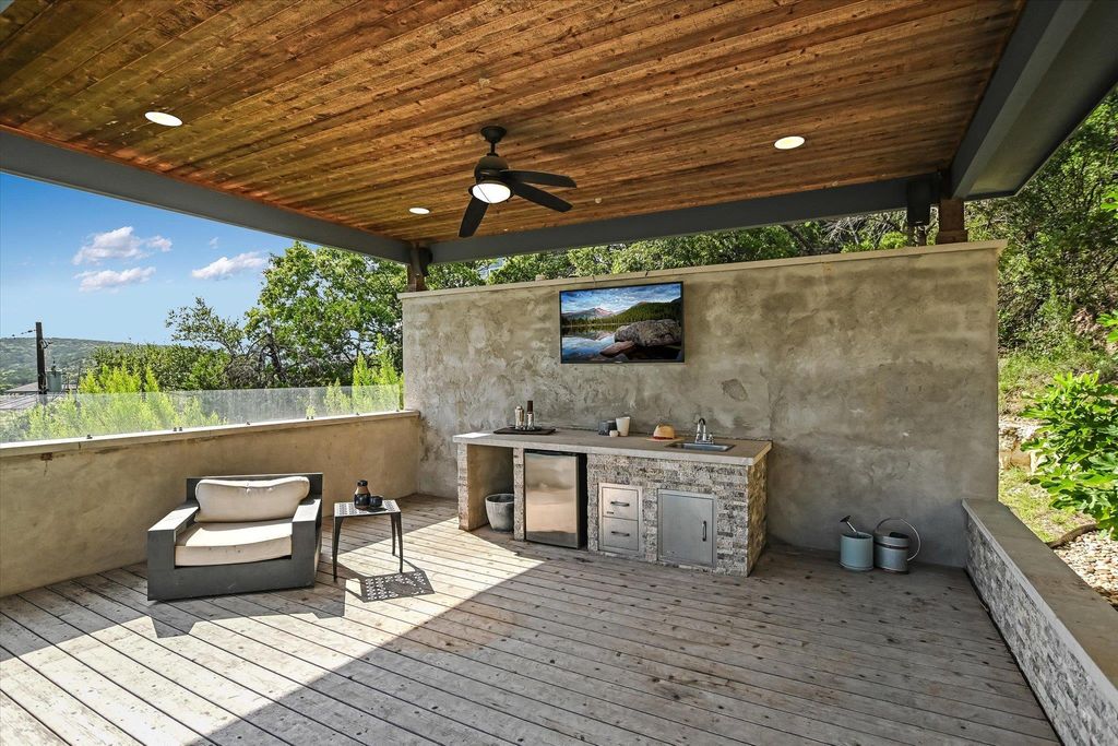 Commanding an elevated hillside setting, this striking custom residence delivers a refined architectural presence paired with sweeping Hill Country and canyon panoramas. Dramatic walls of glass bathe the open-concept interiors in natural light while showcasing vivid sunsets and expansive views. The chef-caliber kitchen anchors the home with premium appliances, a generous island, and effortless flow into the dining and living spaces"”crafted for both elevated entertaining and everyday ease. The primary suite is a true private sanctuary, featuring separate his-and-her spa-inspired bathrooms and walk-in closets, along with a private balcony designed to take in the surrounding Hill Country scenery. Multiple guest suites, a dedicated office, and versatile bonus spaces create flexibility for hosting, working, and unwinding. Outdoors, the property unfolds into a resort-style experience featuring an infinity-edge pool overlooking the hills, a covered cabana with outdoor kitchen and TV, a fire pit deck, and a turf play area framed by native landscaping and dramatic limestone terrain. Exceptional Opportunity: The neighboring tower-style residence at 5310 Scenic View Dr (MLS #8158566) is also available and is currently leased through mid-2027, offering a unique investment or future estate expansion opportunity. Together, the two architecturally distinctive properties present a rare chance to curate a landmark Hill Country compound. Ideally located just minutes from Lake Austin, highly regarded Eanes ISD schools, and premier dining, this home offers an elevated lifestyle defined by views, design, and location.