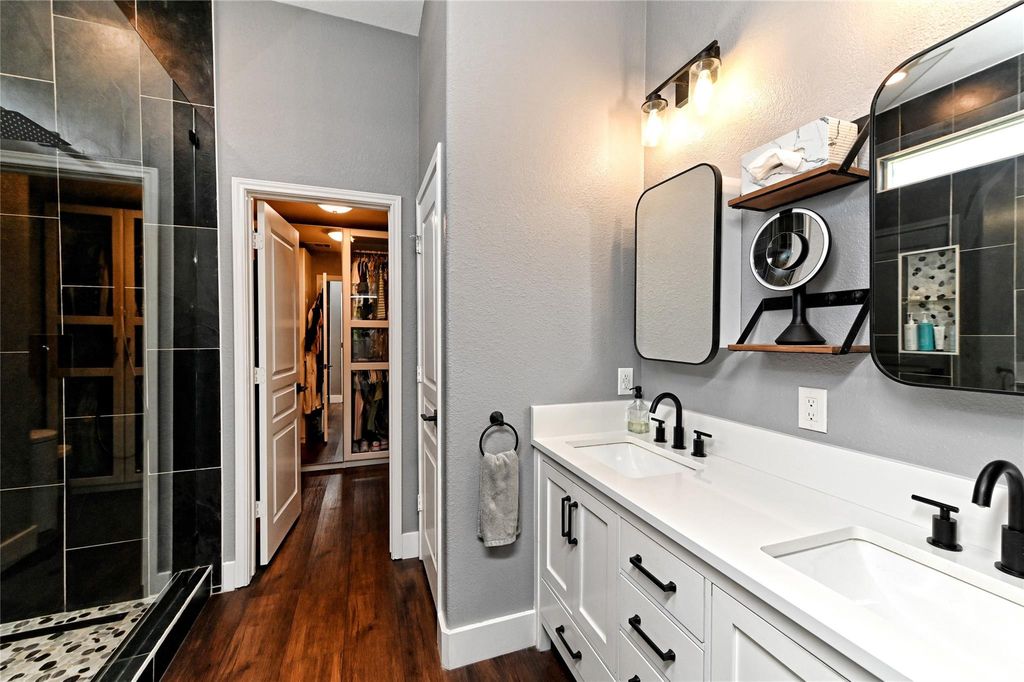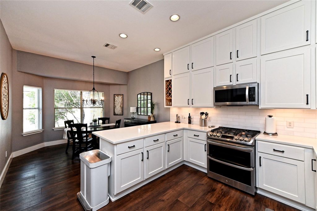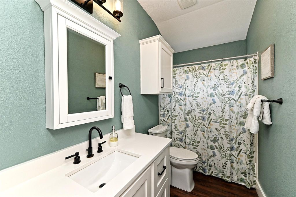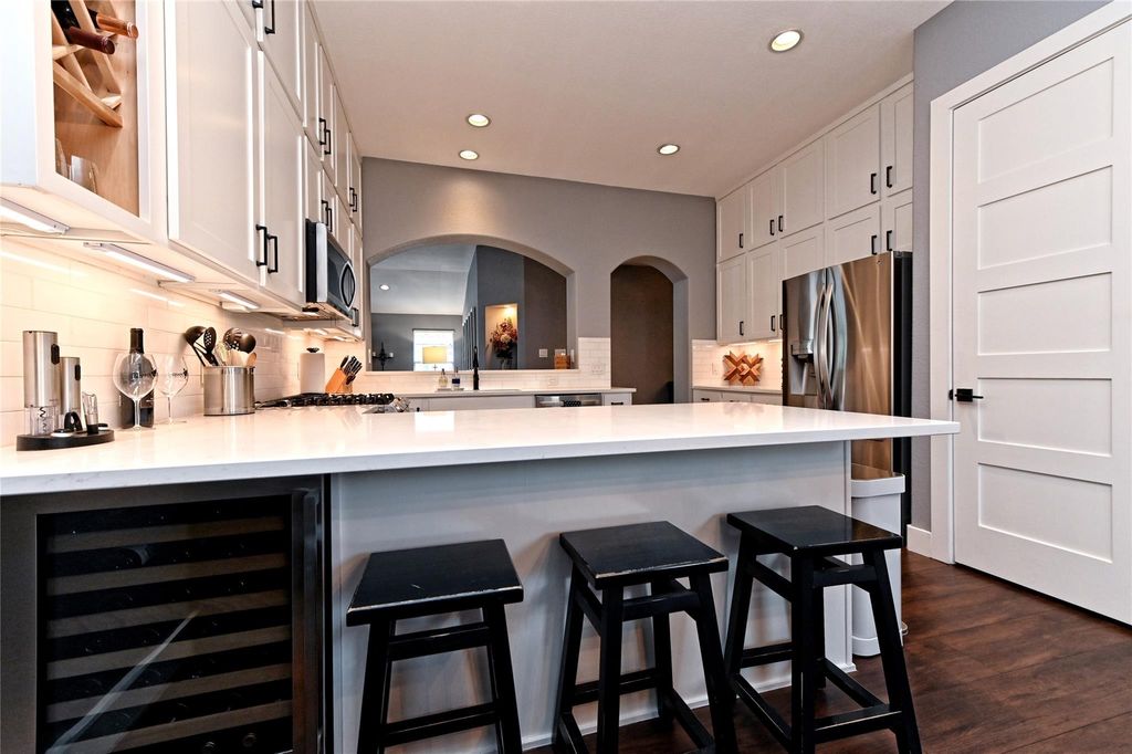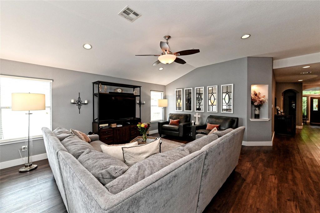 This beautifully renovated Highland Park home offers a perfect balance of comfort, style, and convenience. Nestled on a greenspace across the street and alley access to a three-car garage, the home features a 2021 kitchen renovation with full-height cabinets, quartz countertops, sink, and wine cooler; a 2021 primary bathroom renovation with a spacious walk-in shower; an Ikea closet system (2019); and a utility room with removable folding table and cabinets. Additional updates include solar panels, luxury vinyl tile flooring with 6" baseboards (2021), a multi-stage 4-ton A/C (2020), new roof (2021), patio extension (2021), fresh exterior paint (2023), as well as a shed and sprinkler system. The open floor plan and spacious backyard make it ideal for entertaining and everyday living, all within walking distance of neighborhood pools, parks, and top-rated local schools.