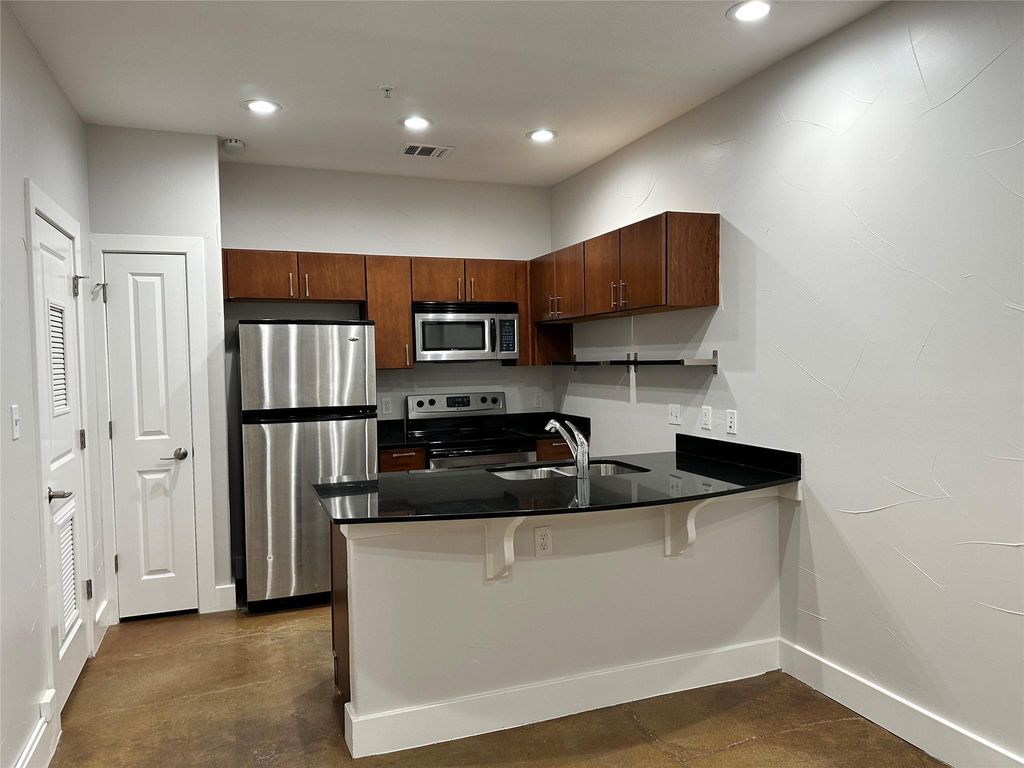 Updated 2 bedroom, 2 bath suites in a gated condo near University of Texas Austin campus. Willow Branch Lofts condominiums is centrally located, less than a mile from UT Campus. This unit is updated in January, 2025. Energy efficient with All LED lights, new paint throughout and comes with all the appliances that you need. Washer & dryer, Stainless steel appliances: Refrigerator, Microwave, Dishwasher, black Range/oven and Google Fiber. Low maintenance scored concrete floors and granite countertop for very easy cleaning. This unit comes with 2 assigned parking. Walk to 24/7 Bennu Coffee shop, restaurants and very short Drive or bike to UT Campus.