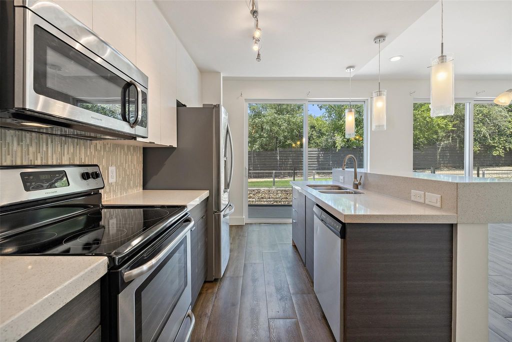 Modern, low-maintenance living in the heart of South Austin's gated Skybridge Lofts community. This stylish three-level condo offers a bright, open layout with clean lines, contemporary finishes, and a flexible floor plan that maximizes space and privacy. One of only two units in the entire community with an oversized wraparound balcony, it offers rare outdoor living space that overlooks peaceful green space"”perfect for relaxing or entertaining. The main living area features vinyl flooring, recessed lighting, and large windows that flood the space with natural light. A sleek kitchen includes an electric cooktop, stainless steel appliances, and ample cabinetry for storage. Three spacious bedrooms are positioned across multiple levels for optimal separation, and the upper-floor laundry adds convenience. The attached two-car garage provides direct access to the unit, and the community amenities"”pool, fitness center, dog park, walking trails, and more"”support an active lifestyle. Centrally located near South Congress, St. Elmo District, and with quick access to I-35 and Ben White, you're never far from Austin's best dining, shopping, and entertainment. A great opportunity for investors or owner-occupants seeking lock-and-leave convenience in a vibrant, growing corridor.