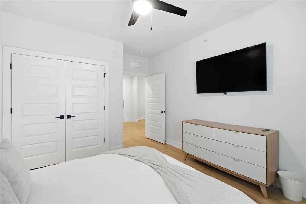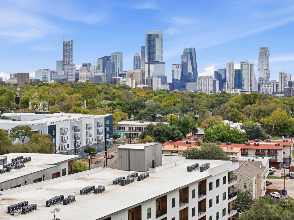 Live in style at Cascade Condominiums with this bright and modern second-floor 1-bed, 1-bath condo perfectly situated near the University of Texas, the Medical District, and Downtown Austin. Ideal for students, medical professionals, or anyone seeking a sleek urban lifestyle, this unit offers elegant comfort, security, and convenience in one of Central Austin's most desirable communities. Step inside to an open-concept floor plan filled with natural light. The contemporary kitchen features a large quartz island with pendant lighting and seating for two, stainless steel appliances, modern cabinetry, and ample prep space"”perfect for cooking, studying, or entertaining. The living area extends onto a private balcony overlooking the serene interior courtyard and sparkling pool, creating an inviting space to unwind. The spacious bedroom includes a generous sized closet, while the modern bathroom offers a quartz-topped vanity, oversized mirror, and a deep shower tub. An in-unit laundry area provides added convenience and storage. Residents at Cascade enjoy resort-style amenities, including a fully equipped fitness studio, a sophisticated club room, co-working space, grilling stations, and a relaxing pool area. The building features secure entry, carpeted corridors, a modern lobby, and a dedicated mail and parcel area. This unit also comes with one reserved EV parking space in the gated garage. With scenic parks and trails moments away and the vibrant energy of Lamar Boulevard and Downtown Austin at your doorstep, this second-floor condo delivers the perfect blend of comfort, style, and unbeatable location.