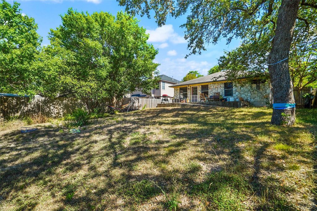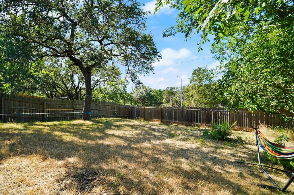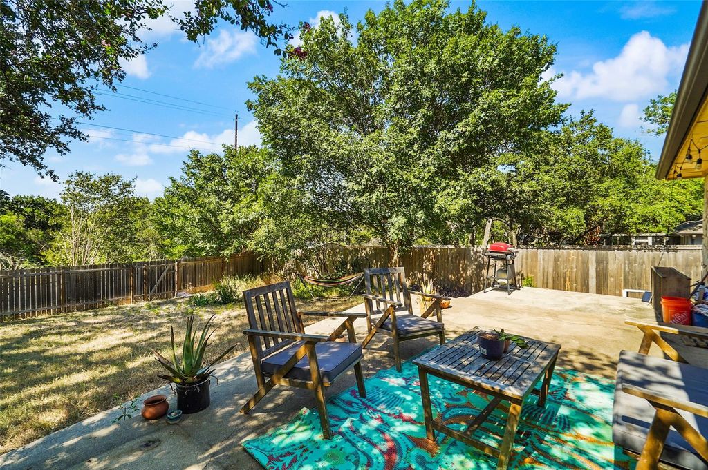 Convenient location with appreciated modern updates. One story 3 bedroom and 2 bath home with engineered wood flooring through living areas, kitchen and bedrooms. Tile flooring in utility and baths--NO CARPET! This home has an open floor plan with tall ceilings which flows into an accommodating back patio area for entertaining, as well as a spacious fenced in yard. The primary suite has a sizable walk-in closet, and ensuite bath with a double vanity. Other features include upgraded lighting and fixtures, fireplace, kitchen appliances in 2018, kitchen island, 2" faux wood blinds, secondary bath has a roll-in shower, AC with Nest replaced in 2018 and a 2 car garage. You will appreciate the proximity of shopping, restaurants and amenities such as Southpark Meadows, Sam's Club, Costco, and HEB grocery stores.