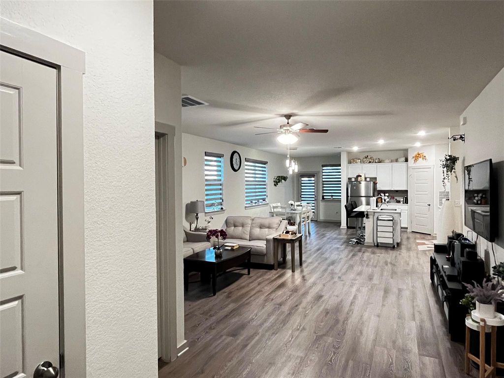Must see! Great view with pond in the backyard with a covered patio. Upstairs, you will find a huge living room along with a fourth bedroom and full bath perfectly for guests or family member. Nice open living and kitchen area. Located just minutes from downtown, Austin, and The Domain. Easy access to 290, I130, and many others.