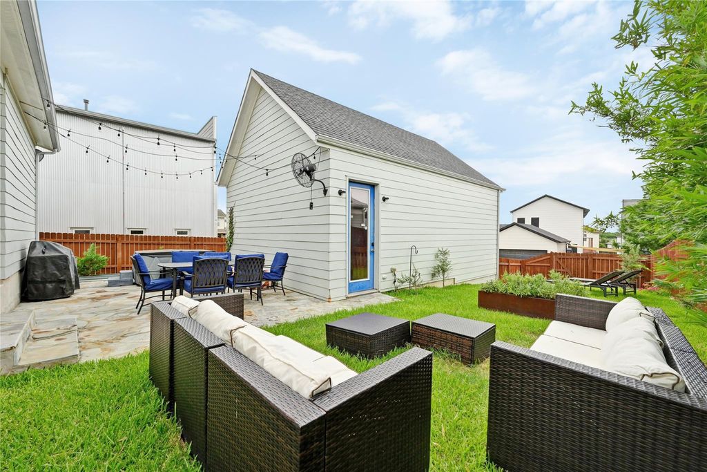 Welcome to 5904 Florencia Ln! This beautiful two-story home is nestled in the vibrant Agave community of East Austin. Built in 2015, the contemporary home offers 3 bedrooms and 3 full bathrooms with 2,462 sq ft of thoughtfully designed living space on an .18 acre lot. The home boasts a spacious and open floor plan with 12 foot ceilings, luxury upgrades, and a fireplace located in the main living room with wood flooring. The main level includes a spacious primary suite with a spa-like ensuite primary bathroom, double vanities, soaking tub, separate shower. and a large walk-in closet. Also included on the main level is a guest bedroom with a glass panel slider to the private backyard space and a full bath. Upstairs includes an additional guest bedrooms with a full bath along with a loft/flex space that overlooks the main living area. Tons of windows in the home offering abundant natural lighting throughout! A large chef's kitchen which includes a center island, quartz counter tops and stainless steel appliances. Situated on a large lot, this property offers ample outdoor space with sitting areas, a detached 2-car garage, alley access, and privacy fencing. The community is known for its contemporary homes and proximity to local amenities, making it an ideal choice for those seeking a blend of suburban tranquility and urban convenience. Easy access to major highways such as 183, 290 & 130; 15 minutes to Downtown Austin, UT, The Domain, & the ABIA Airport!