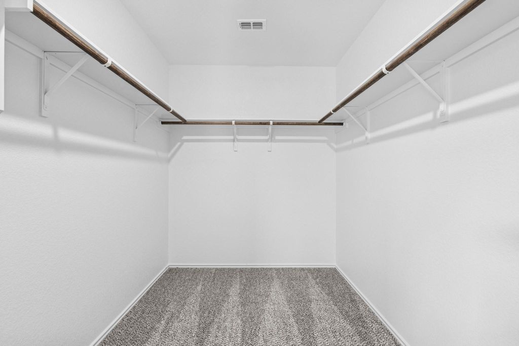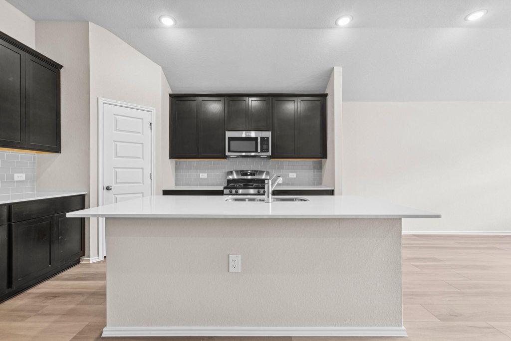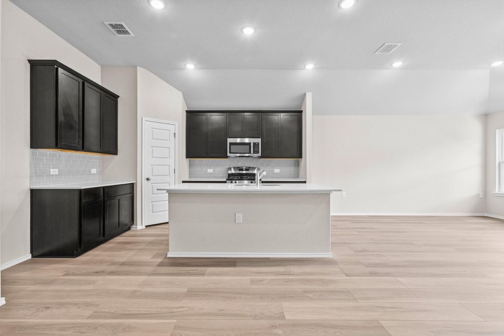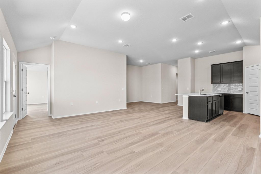 Upon entering this home through the covered porch, you will find two private bedrooms and a full bathroom tucked immediately off the entry. Continuing through the entry you will find the laundry room nestled in a private hallway and an additional bedroom. Further down the foyer you'll be greeted by the open, seamless living areas. The kitchen boasts an oversized kitchen island that opens to a huge family room and dining room. You can also move the dining and entertaining outdoors on the covered patio .Your owner's suite is tucked away at the back of the house with access off the family room. The large bedroom features an optional extended bay window for extra space and plenty of natural light. Double doors for a grand entry into the owner's bath retreat that features a spacious walk-in shower. The owner's retreat also features a massive walk-in closet to store all your belongings, plus room for more!