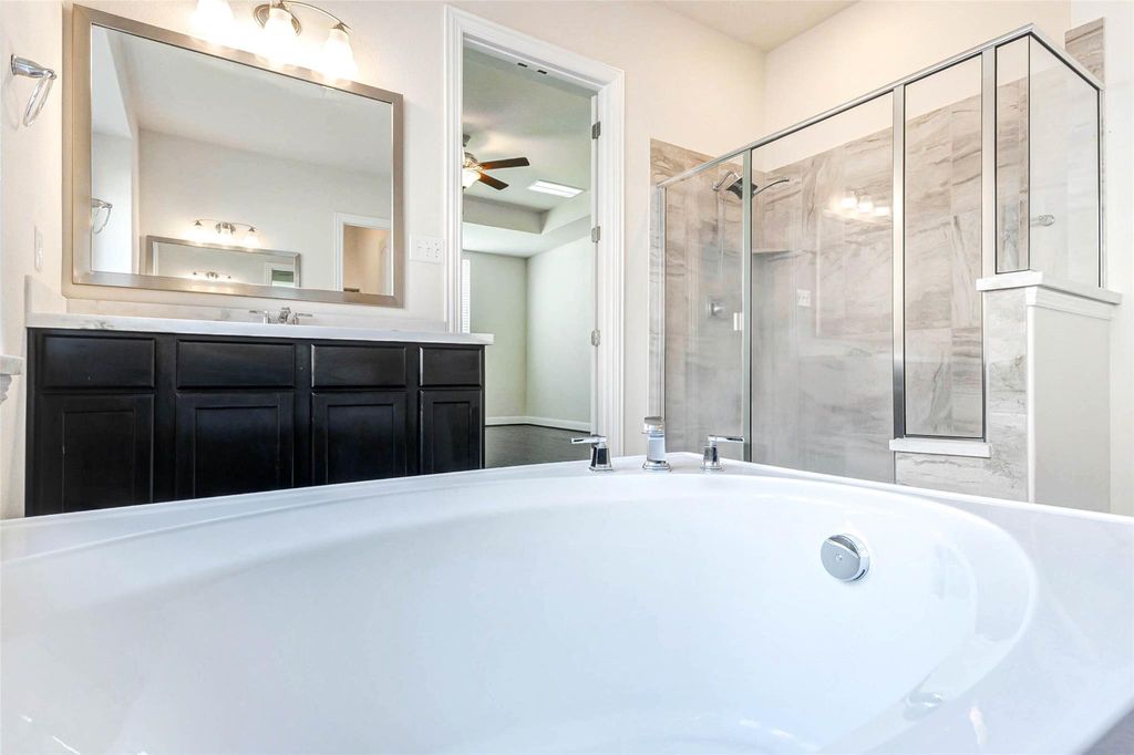 INTERIOR | Ceiling Fan(s), Double Vanity, Entrance Foyer, Granite Counters, High Ceilings, High Speed Internet, Kitchen Island, Master Downstairs, Open Floorplan, Pantry, Recessed Lighting, See Remarks, Smart Thermostat, Soaking Tub, Tray Ceiling(s), Walk-In Closet(s) |