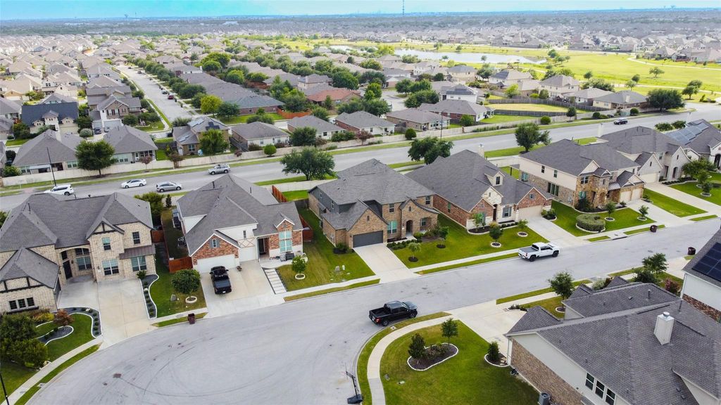 Ideally located just off 130 Tollway and only 10 minutes from I-35, this stunning home offers quick commutes to Austin, Round Rock, and major employers in the tech corridor. Nearby Stone Hill Town Center provides everyday convenience with Costco, Target, Home Depot, Cinemark, restaurants, and more. Golf enthusiasts will love being just minutes from both Blackhawk Golf Club and The Golf Club at Star Ranch. Nestled in the heart of Blackhawk, one of Pflugerville's most vibrant master-planned communities, residents enjoy resort-style amenities: two amenity centers, clubhouses (including a barn-style venue), resort-style pools, fitness center, tennis and basketball courts, pavilions, playscapes, a baseball field, sand volleyball, and catch-and-release fishing lakes. Inside, you're welcomed by a grand two-story foyer that flows past a dedicated study with French doors and a formal dining room with chandelier lighting. The open-concept layout continues into the living room with 20-ft ceilings and a gas-log fireplace, seamlessly connected to the kitchen and breakfast nook, which opens to a covered back patio with no rear neighbors"”a private space for outdoor living and entertaining. The main level includes a spacious primary suite with two walk-in closets, dual vanities, an extended walk-in shower, and a soaking tub. A secondary bedroom and full bath on the first floor provide a flexible guest suite or in-law arrangement. Upstairs are four additional bedrooms, including a Jack-and-Jill bath, plus a game room and media room"”ideal for relaxation, play, or work-from-home flexibility. The roof was replaced in June 2024. At the same time, a solar fan and additional attic vents were installed. Room Sizes on floor plan and listing are estimates. Don't miss your chance to own one of the largest and most versatile homes in Blackhawk! Ask about the Seller's Flex Cash Contribution towards Buyer's Mortgage Rate Buydown or Closing Costs.