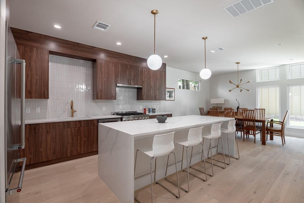 1405 Singleton Ave delivers East Austin living with a true neighborhood feel. Enjoy nearby staples like Nixta Taqueria and Bird Bird Biscuit, with East 6th's buzz just a short ride away. Guests and friends will love being just far enough for peace and quiet, yet close enough to all the action. Newly built in 2024, this home blends style and function with 3 bedrooms, an office, and 2.5 baths across an open layout. A sleek chef's kitchen with custom cabinetry, island seating, and high-end finishes flows easily into the living and dining areas, perfect for hosting. Upstairs, the primary suite offers a private balcony and spa-like bath, while two secondary bedrooms share a Jack-and-Jill. A large detached garage adds extra storage, parking, or flex use, while out back the pool and patio create a private escape designed for gatherings, relaxation, and Austin living at its best.