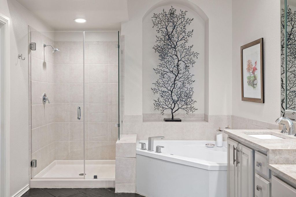 Welcome to 7800 Southwest Parkway #1112, a meticulously maintained 3-bedroom, 2.5-bath, townhome-condominium nestled within the serene Escondera community. This two-story residence offers a harmonious blend of comfort, style, and convenience, making it an ideal choice for refined, lock-and-leave living. **Furnishings may convey** Inside, you'll find high ceilings and abundant natural light throughout. The gourmet kitchen is equipped with granite countertops, recessed lighting, and modern appliances. The primary suite is located on the main level and includes a spacious walk-in closet and an en-suite bathroom with a double vanity, jetted tub, and separate shower. Upstairs, two additional bedrooms share a full bathroom, along with a versatile bonus room that can serve as a home office, media room, or extra storage. Outside the home features an attached 2-car garage and a spacious back patio. Escondera offers a gated community lifestyle with 24-hour security, a resort-style pool, and a fitness center, surrounded by lush greenbelts with hiking and biking trails nearby. Conveniently located just minutes from downtown Austin, this home provides easy access to shopping, dining, and entertainment.