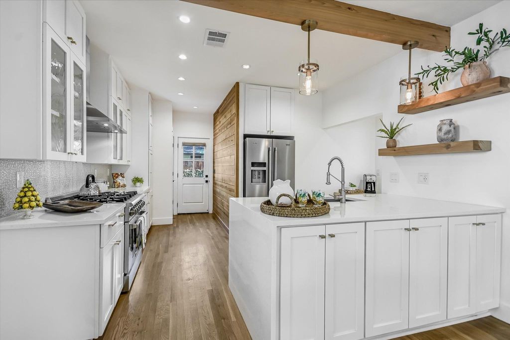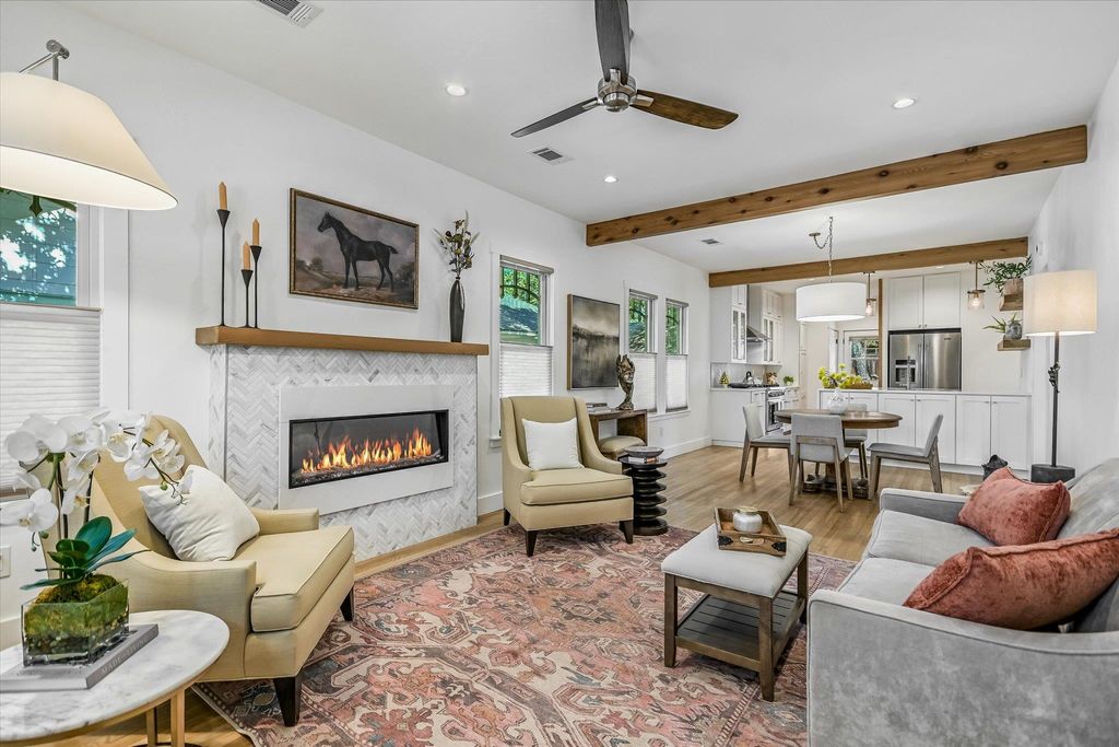 This rare Hyde Park treasure blends timeless charm with amazing updates. This back-to-the-studs renovation is beautifully remodeled- 2-bedroom, 2-bath home with a detached guest cottage sitting on a spacious corner lot shaded by towering trees. Extensively updated throughout, the home blends modern comfort with enduring quality. Major improvements include all-new PEX plumbing, closed cell foam insulation in all exterior walls, PVC wastewater lines, upgraded electrical with 150-amp GE panel, Pella Impervia Windows, Carrier HVAC w/Nest thermostat & so much more! The kitchen & baths feature custom cabinetry, quartz countertops, Grohe fixtures, and seamless glass shower enclosures. Additional highlights include refinished gorgeous white oak floors, a 36" Thor professional range, wine refrigerator, Modern Flames fireplace, and Hunter Douglas window shades. With fresh exterior paint, a new roof, and beautifully landscaped grounds, this home is move-in ready and built to last. Both bedrooms offer peaceful retreats, and the updated baths combine modern finishes with classic details. The detached studio"”currently leased for $1,100/month"”provides flexibility as a guest space, rental, or home office. The large lot offers room to relax, entertain, or explore future expansion (buyer to verify).The lease extends through June, 2026. The craftsman-style exterior, original hand-made window screens, limestone walls, and inviting front porch with swing set the tone for this one-of-a-kind property. Inside, raised ceilings, warm hardwood floors, and terrific natural light highlight the home's character, while a custom fireplace anchors the open living, dining, and kitchen areas. Located in the heart of Hyde Park near the UT Shuttle Bus, parks, restaurants, grocery stores, and just 8 blocks to The University of Texas, this home perfectly balances historic charm and modern living"”a true Austin classic.