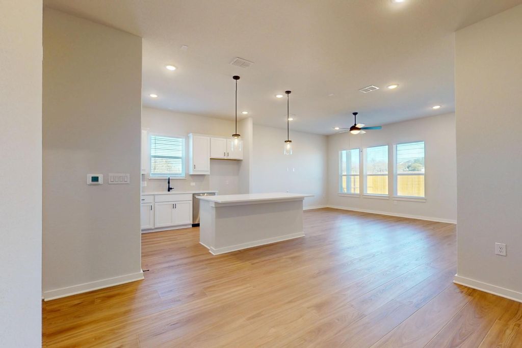 The Highland Plan is perfect for anyone who enjoys a spacious, open concept single story home featuring 4 bedrooms and 2 bathrooms. With 10' ceilings and a beautiful exterior, this home offers plenty of curb appeal. The kitchen boasts a large island, quartz countertops, 42" cabinets and GE stainless steel appliances. The owner's suite is thoughtfully located at the back of the home, offering a peaceful and private retreat. To view this home with all of its upgrades, come see us at Estancia West, just 12 miles from downtown!