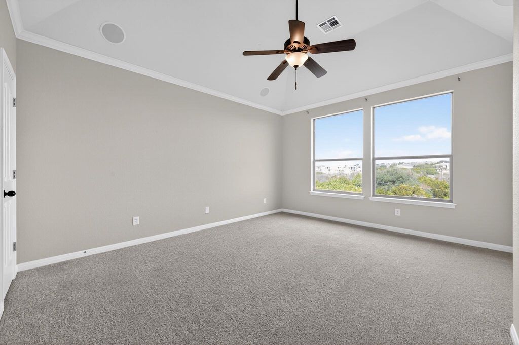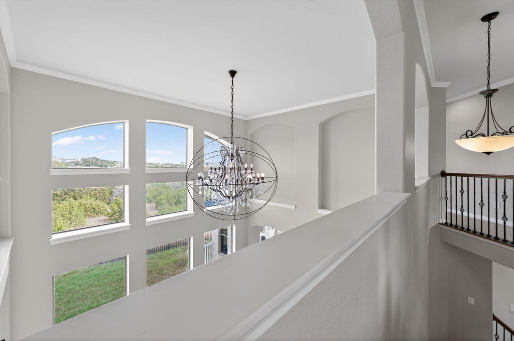 Welcome home! Set on a quiet cul-de-sac, this expansive 5-bedroom, 4-bath Lantana residence offers over 3,500 square feet of refined living with thoughtful separation of space and scenic greenbelt and city views. Built in 2008 and meticulously maintained, the home blends generous scale with timeless finishes designed for both everyday comfort and elevated entertaining. The main level features a private primary suite with a spa-inspired bath, dual vanities, and garden tub, creating a true owner's retreat. Multiple living and dining areas provide flexibility for formal entertaining, casual gatherings, or work-from-home needs, all anchored by a sun-filled great room with soaring ceilings and a gas fireplace. The kitchen is well-appointed with built-in ovens, gas cooking, ample cabinetry, and a breakfast area that opens seamlessly to the main living spaces. Upstairs, four additional bedrooms and multiple full baths offer exceptional privacy and versatility, ideal for family, guests, or dedicated office and media spaces. High ceilings and clerestory windows to die for allow natural light to elevate the home's sense of openness and comfort throughout. Situated on a nearly quarter-acre lot, the fenced backyard provides room to relax, entertain, or personalize, while enjoying peaceful views of the surrounding greenbelt. Zoned to Austin ISD schools and minutes from South Austin lifestyles, shopping, and outdoor trails, this home delivers space, privacy, and sophistication in one of Southwest Austin's most desirable communities.