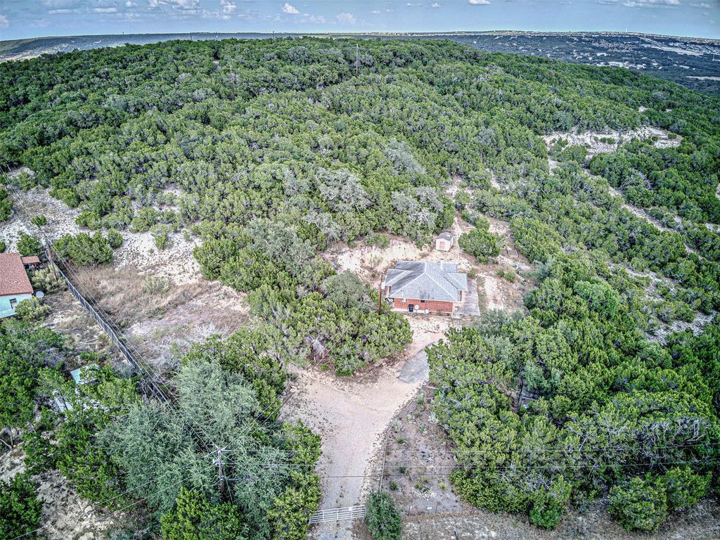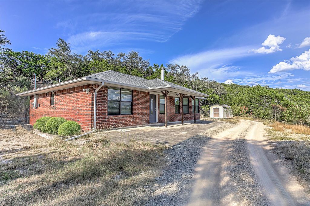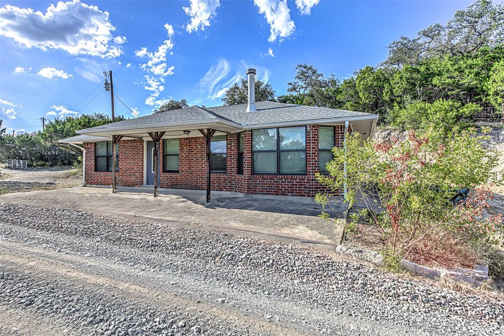 Enjoy peace and tranquility with great Hill Country views! Single-story 3 bedroom house features large living room with a double sided fireplace also accessible from the primary bedroom. Lots of space in the kitchen to let loose your inner chef. Spacious primary bedroom with ensuite bathroom with double vanities and a walk-in shower. Ceiling fans in all bedrooms. Utility/storage shed present on the property. Plenty of parking and space to enjoy. Large lot to give you privacy and a nice outdoor space to enjoy the amazing panoramic views. Tour today and welcome to your new abode!!