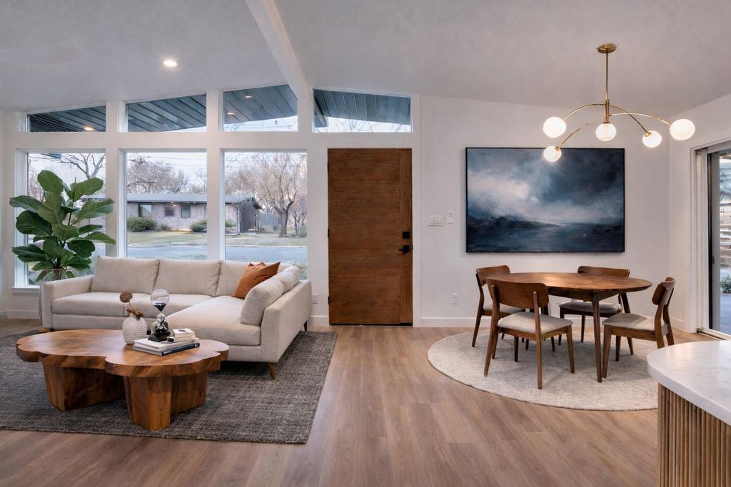 Fully permitted, midcentury modern design-driven renovation in vibrant East Austin! This 3-bed, 1-bath home delivers style you can feel and upgrades you can trust. This was not a cosmetic flip "” all major systems are done. New plumbing in the walls and foundation (all cast iron plumbing replaced), new electrical (wiring, fixtures, dimmable switches), new HVAC system (condenser, furnace, sleek vent covers), foam insulation, new energy-efficient windows/doors, new 35-year architectural roof, and new tankless water heater. Vaulted ceilings and huge picture/clerestory windows flood the living room with natural light, creating an open, airy vibe that feels larger than its footprint. White oak-look LVP flooring runs throughout for a seamless, modern look. The kitchen is a true standout: custom white oak cabinetry with soft-close drawers, spice storage and dual lazy Susans, quartz countertops, terrazzo-inspired backsplash, and a sculptural curved fluted peninsula that anchors the space and makes entertaining easy. Under-shelf LED lighting and a full LG Studio appliance package (gas cooking, refrigerator included) in Essence White add elevated function and style. The bathroom was boutique hotel-inspired, featuring moody green zellige and fluted wood-look tile along the backsplash and inside the walk-in shower, a backlit sunrise mirror, and a smart toilet with heated seat / multiple bidet features. The primary bedroom has 2 closets and access to a new deck that spans the entire width of the home, overlooking the newly-fenced, fully enclosed backyard "” ideal for hosting, relaxing, or expanding with a new gas line for a future outdoor kitchen. In the 3rd bedroom is an interior laundry closet, offering flexibility for a home office, gym, or guest space. The carport with finished storage includes an EV charger. Architecturally interesting, structurally solid, and perfectly positioned near the energy of Downtown Austin "” move-in ready and designed to stand out. Agents are owners.