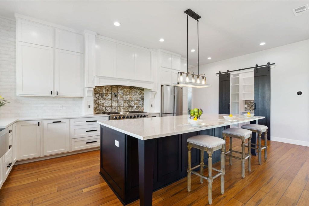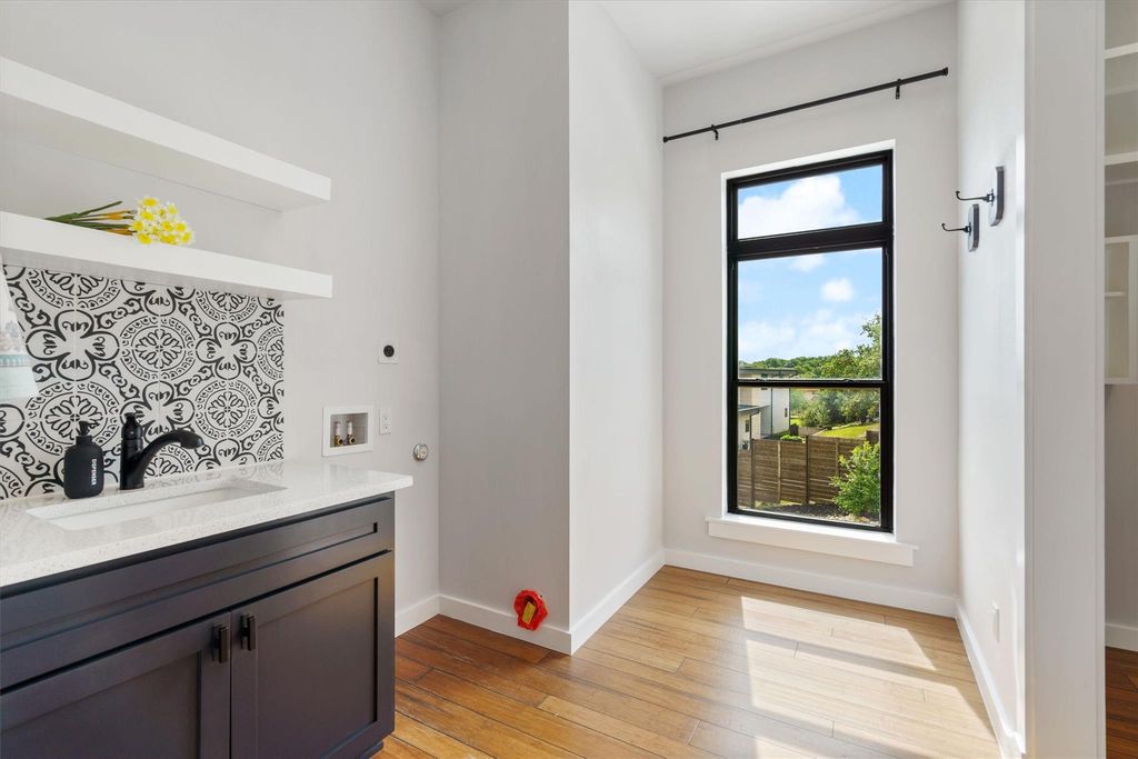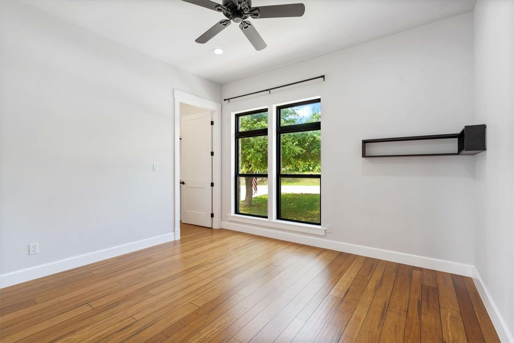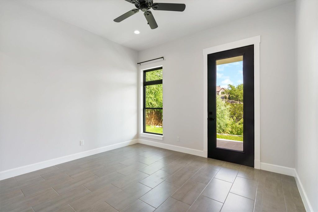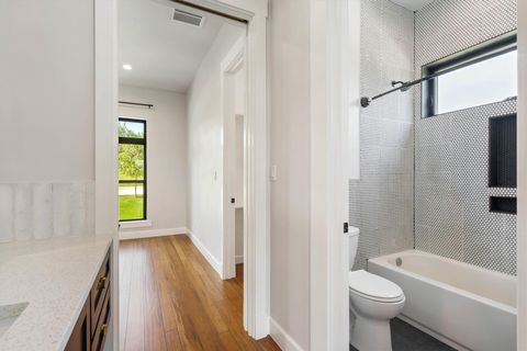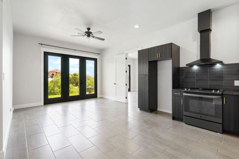 Multi-Generational - Custom Modern Farmhouse home in Vista Estates is nestled on a 1-acre lot with beautiful views. This property is ideal for an extended family. Downstairs, you have a two-bedroom mother-in-law suite with a full kitchen & Laundry with no steps to access from garage. You have a living and dining area, and a door you could lock from the main level. You have a large covered front porch with a side ramp for those large items, which is not ADA-compliant. This stunning home features a black metal roof, stone, stucco, Hardiplank siding, Hill Country views, luscious front landscaping, plenty of room for a pool, and much more. Bamboo wood floors throughout the main level. Tile in the bathrooms. Upstairs, on the main level, you have four bedrooms and three full baths, a spacious living room with soaring ceilings, an electric fireplace, custom doors with the back doors open, and a long tile floor balcony stretching the home's length. Your kitchen features sparkling Quartz counters, an island, a Thor chef gas stove (the only thing in the house on propane) with six burners, a griddle, two ovens, a pot filler tap, and hidden spice storage on each side of the stove cabinets. Matching Thor side-by-side refrigerator does convey and a butler's pantry with barn doors, a sink, and space for a freezer/fridge, including a gun closet that houses the professional-grade security camera system. It features a barn door entry into the bath, a custom-built dual sink vanity, a luxurious walk-in shower, and a large WIC. The owners have custom built-in's in all the closets to ensure maximum use of space. The patio stretches the length of the home and has three access doors directly to this space. Relax under your covered patio or soak up the views. In this coveted area of the Spicewood, you are in the Lake Travis School District"”a Short drive to Lake Travis and the Hill Country Galleria. Fantastic location! Close to nearby roads, shopping, & restaurants.