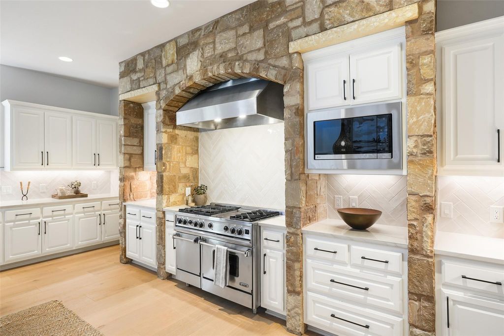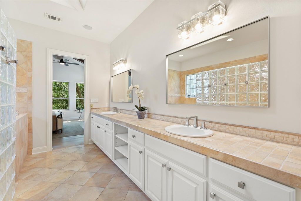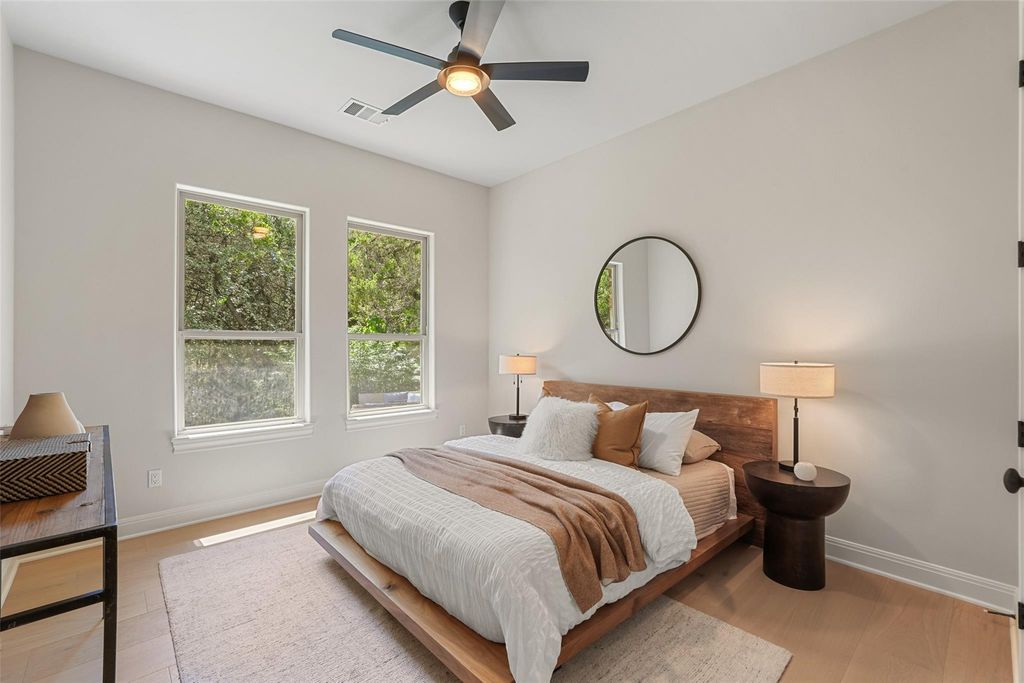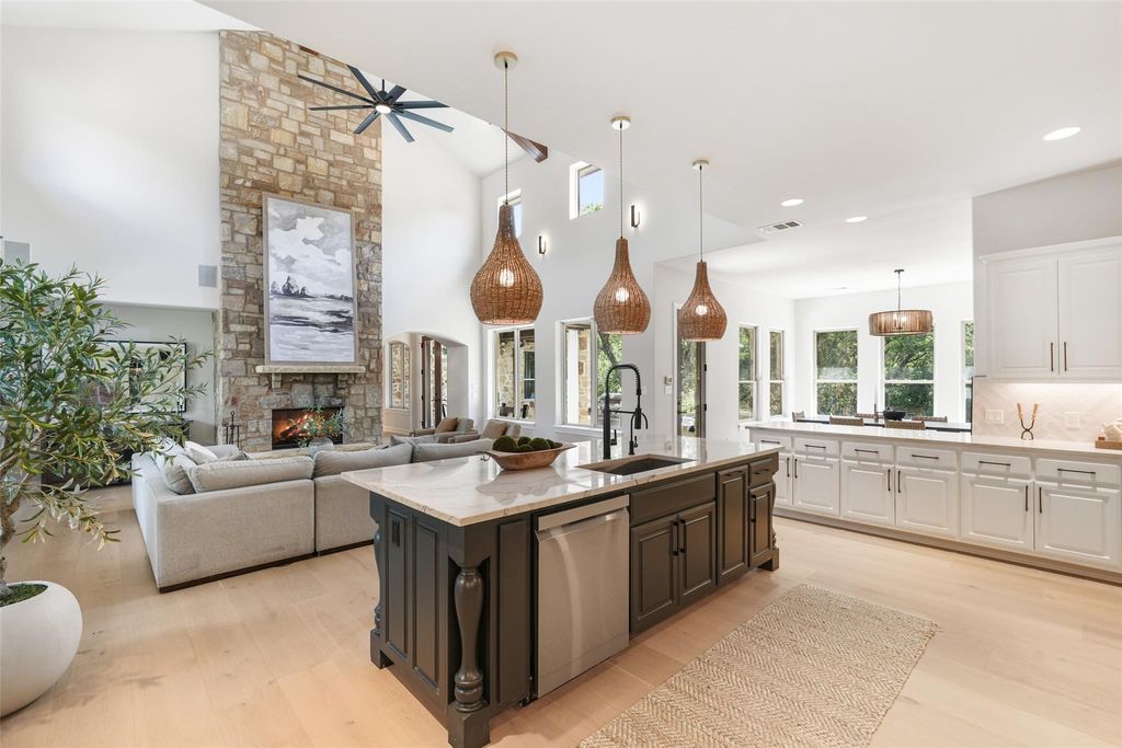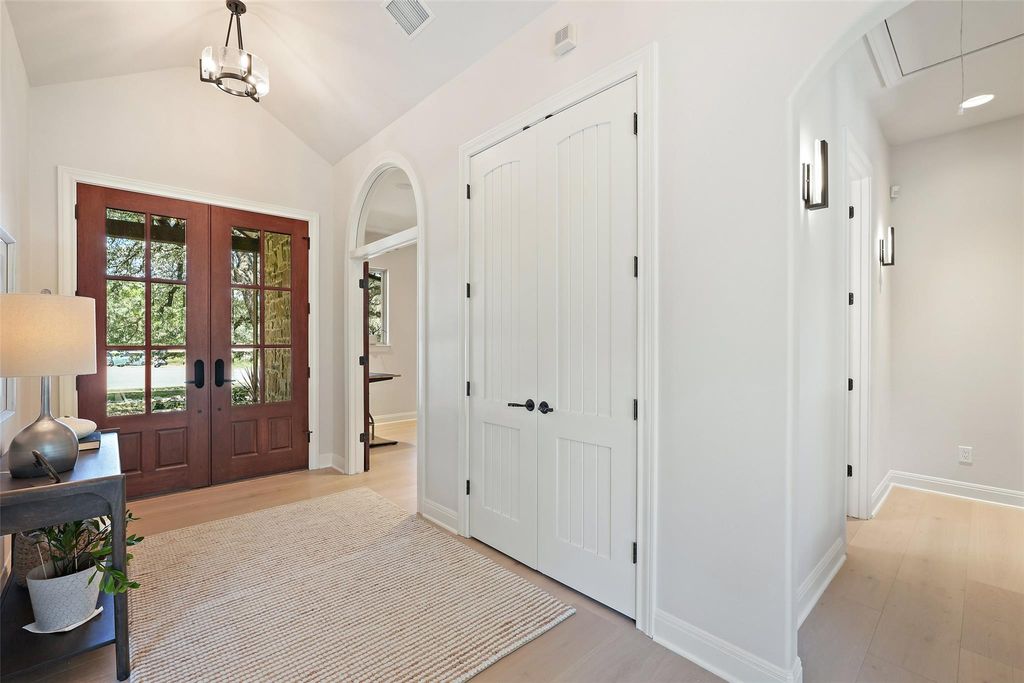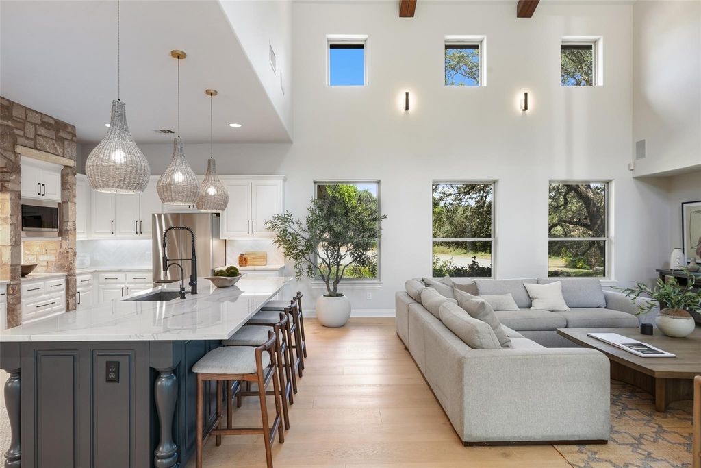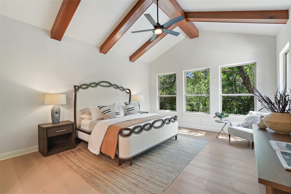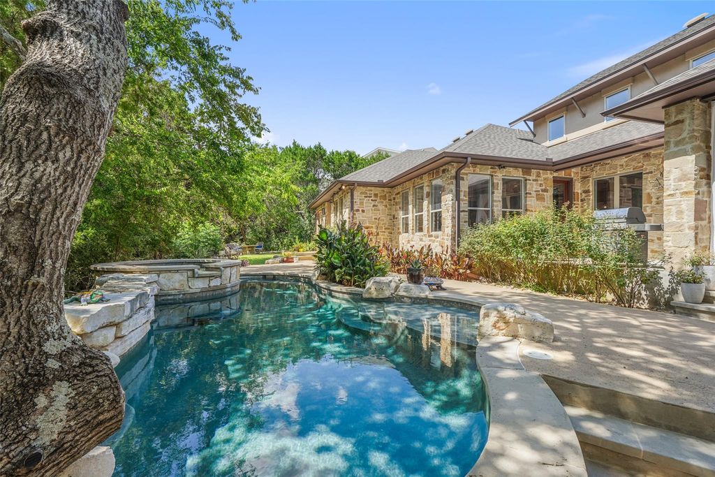 Live the Lake Austin lifestyle you've always dreamed of in this custom-crafted masterpiece, nestled on a serene private cul-de-sac in the exclusive Greenshores neighborhood. Just five minutes from Ski Shores, this home offers exclusive access to a private boat launch, dock, volleyball court, and playground for Greenshores residents, blending sophisticated elegance with the ultimate in waterfront recreation and community amenities. Oversized windows flood the space with natural light, highlighting newly installed 10-inch white oak floors that flow throughout. Freshly painted walls, modern designer fixtures, and an open-concept layout create a refined yet welcoming ambiance, perfect for intimate gatherings or lavish entertaining. The chef's dream kitchen is anchored by a showstopping 4-foot JADE range, a professional-grade masterpiece featuring six burners and integrated 1-inch thick, steel griddle offering a versatile cooking surface for everything from sizzling breakfasts to gourmet teppanyaki, featuring dual convection ovens. Complemented by sleek granite countertops, and new stainless steel appliances, the kitchen offers abundant prep space for culinary artistry and effortless hosting. Retreat to the expansive primary suite, where towering ceilings and abundant light create a serene sanctuary. The spa-inspired bathroom elevates relaxation with a custom-built Japanese soaking tub (ofuro), a walk-in shower with dual showerheads, and luxurious finishes that evoke a five-star resort. Step outside to your private oasis, featuring a sparkling saltwater pool and inviting hot tub, perfect for leisurely afternoons or starlit evenings. Guest bath ideally situated with exterior access to the pool.The generous outdoor living space offers unmatched privacy amidst lush surroundings. A spacious three-car garage and proximity to Emma Long Park and Turkey Creek Trail complete this extraordinary offering in Lake Austin's most coveted communities. *Low 1.6 Tax Rate & Pre-inspected