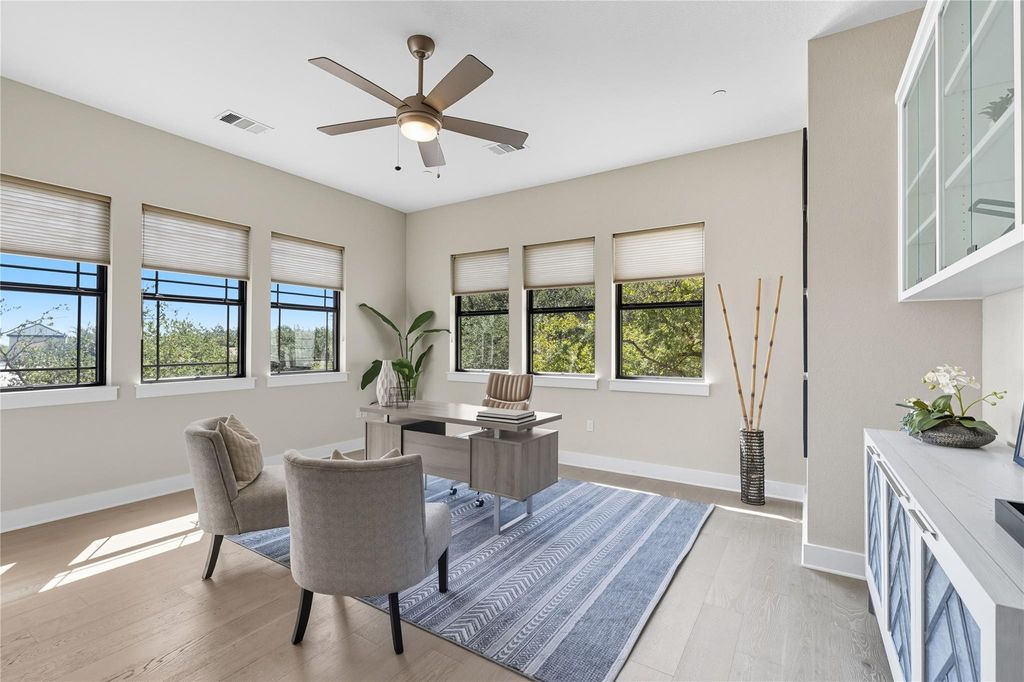 A rare opportunity to enjoy newer construction in established Northwest Hills. Built in 2019, this lightly lived-in home offers all the ease and comfort of modern living"”without the hassle of renovations or upkeep. In a neighborhood where new builds are uncommon, this home stands out for its thoughtful design and low-maintenance lifestyle. Garage to grocery, drug store and a number of restaurants in less than two minutes! Wide-plank light wood floors, high ceilings, and a wall of windows welcome you into a bright, airy interior. Remote-controlled shades in the main living area offer effortless control of natural light. The open-concept layout connects kitchen, dining, and living areas for seamless day-to-day living and relaxed entertaining. The kitchen features a large quartzite island with seating, ample prep space, and under-cabinet lighting"”all designed for functionality and style. Step out to the covered patio and take in the professionally landscaped backyard"”perfect for morning coffee or low-key evenings.The spacious primary suite is conveniently located on the main floor, with peaceful backyard views and a beautifully appointed en-suite bath. Enjoy a large walk-in shower, floating vanity with quartzite counters + under-vanity lighting, a separate water closet, and a generous walk-in closet. Upstairs, a large flex space is perfect for a second living area, TV room, accompanied by three bedrooms, two full baths, and a laundry room. his smart layout offers privacy for guests and separation from the primary suite. HOA fee covers insurance, tree, yard and common area maintenance, trash, recycle and compost. Move-in ready, low-maintenance, and perfectly located"”this home is ideal for those looking to simplify without compromise. Buyer/buyer's agent to independently verify all information, including but not limited to HOA, taxes, schools, distances to locations, etc.