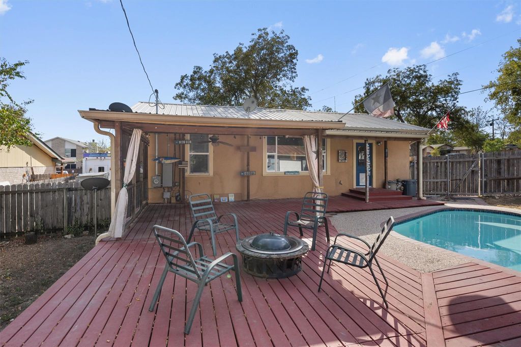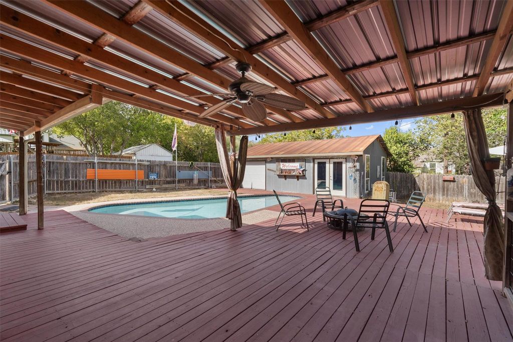 Welcome to a truly rare find. Homes in this highly desirable neighborhood seldom come on the market! Just four blocks from vibrant Downtown Pflugerville, this beautifully preserved 1939 Bungalow blends timeless charm with tasteful modern updates, offering the perfect combination of character, comfort, and convenience. Lovingly maintained by the same owners for over 30 years, this approx. 1,365 sq ft home features 2 spacious bedrooms, 1.5 bathrooms, and an inviting, open-concept layout ideal for both everyday living and entertaining. The heart of the home is the remodeled kitchen, thoughtfully updated within the last two years. Enjoy granite countertops, upgraded stainless steel appliances, a built-in oven and microwave, and a generous oversized island. Throughout the home, you'll find original wood flooring, shiplap walls, and craftsman-style woodwork, all highlighting the bungalow's authentic charm. The cozy living room features a decorative fireplace with a classic wood mantel, creating a warm and welcoming space. Step outside into your own private backyard retreat! The custom deck overlooks a refreshing in-ground pool, with updated surfacing and pump system completed within the last 5 years "” an ideal space for relaxing or hosting unforgettable gatherings. The detached two-car garage (approx. 600 sq ft) is full of potential. Currently transformed into a poolside cabana and game-day hangout, it's been spray foam insulated and drywalled, making it a comfortable year-round space. With a little vision, it could easily be converted into a guest suite, ADU, home office, or studio. Additional features include: RV parking pad with 240V hookup Pre-inspection completed - report available upon request No HOA This one-of-a-kind home is ready for its next chapter and its next lucky owner. Schedule your tour today and experience the charm, character, and lifestyle this rare property has to offer!