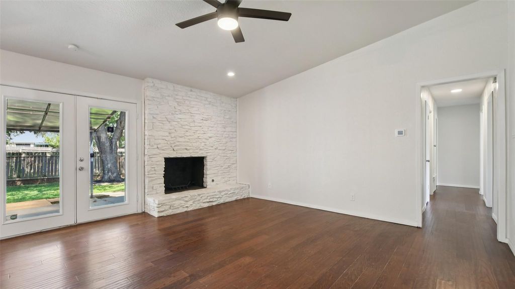 Updated in June 2025. The neutral color paint scheme provides a calming atmosphere, complemented by the warmth of the fireplace. The kitchen is a chef's dream with accent backsplash, and all stainless steel appliances. Fresh interior and exterior paint give the home a clean, modern look. Partial flooring replacement adds a touch of elegance. The covered patio is perfect for outdoor relaxation, and the fenced-in backyard ensures privacy. This home is a must-see for those seeking a fresh, modern living space..Included 100-Day Armadillo Home Warranty with buyer activation.
