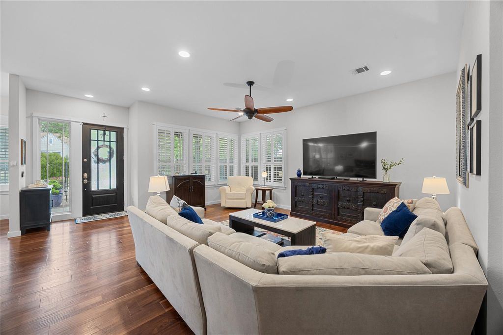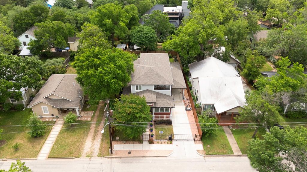 Welcome to this wonderful home on a quiet street in the heart of Austin. This two-story gem offers the perfect balance of charm, space, and modern upgrades. Step inside to an open floorplan featuring high ceilings, recessed lighting, and a bright, spacious living room that flows directly into the gourmet kitchen and dining area "” ideal for entertaining and everyday living. The kitchen is a chef's dream, equipped with a Bertazzoni gas cooktop, built-in oven, double oven, KitchenAid stainless appliances, dishwasher, disposal, and exhaust fan. A tankless gas water heater and spray foam insulation enhance energy efficiency. You'll also appreciate the built-in bookcases, walk-in closets, and multiple living areas wired for sound. The downstairs primary suite is a relaxing retreat with a full bathroom featuring a dual vanity, large walk-in shower, and a spacious walk-in closet with built-in storage. The laundry room includes a convenient utility sink, and there's also a guest-friendly half bath on the main floor. Upstairs, you'll find three additional bedrooms, a full bath, and a large bonus room that works perfectly as a second living room, playroom, or office. Enjoy outdoor living on one of the three covered porches, including a spacious back deck overlooking the private, fully fenced backyard with a sprinkler system in both the front and back yards. Parking is a breeze with a one-car garage and tandem covered parking. Located within walking distance to shopping, restaurants, transit, and UT, this home truly has it all "” comfort, function, and an unbeatable location.