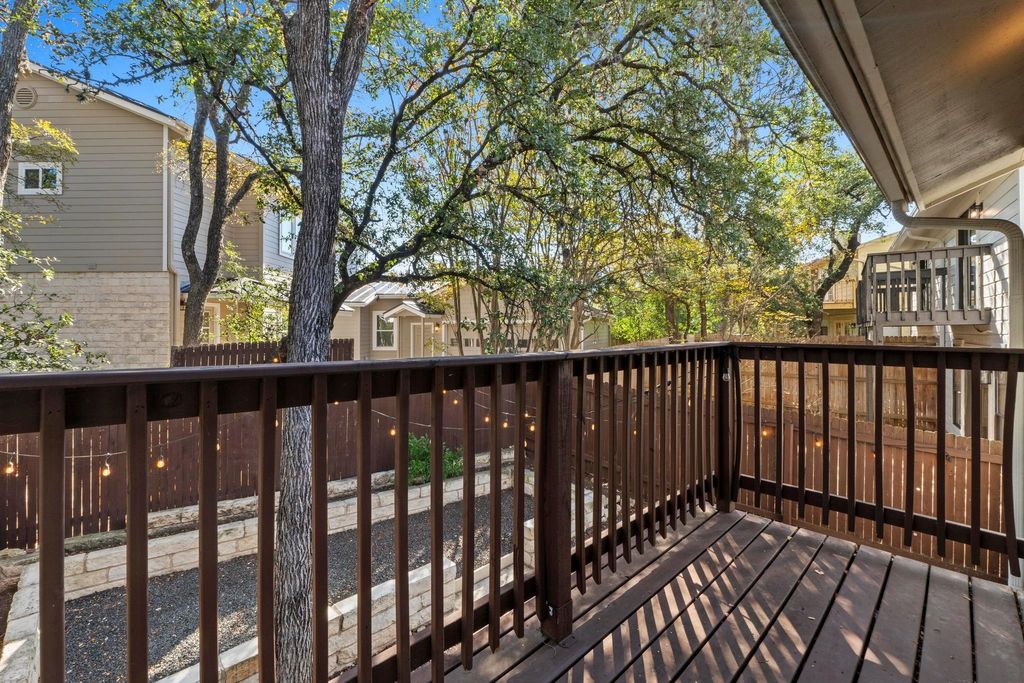 Experience modern comfort and Austin charm in this beautifully updated 3-bedroom, 2.5-bath condo offering 1,280 square feet of stylish living space in one of the city's most coveted pockets. As the B unit of a duplex"”with no HOA fee"”this home provides incredible value and freedom rarely found in this area, where most nearby condos come with high monthly dues. Updated, move-in ready, and low-maintenance, it's an exceptional opportunity. The main floor features sleek polished concrete flooring and a bright living area with recessed lighting, a stone fireplace, and French doors that flow seamlessly into the private backyard. The open kitchen is designed for both function and flair with quartz countertops, stainless-steel appliances, and ample prep and storage space. Upstairs, bamboo flooring extends through the hallway and all three bedrooms, including the spacious primary suite"”a true retreat"”featuring a vaulted ceiling, private balcony, and an en-suite bathroom with a modern dual vanity. Two additional guest bedrooms share an updated full bathroom, and a convenient half bath is located on the main floor for guests. Step outside to enjoy a covered patio and a fully fenced backyard with custom stonework"”perfect for relaxing or entertaining in your own private oasis. The current owners also added a 50-amp outdoor outlet, ideal for RV hookup or rapid electric vehicle charging, adding versatility and future-ready function to the property. Located in a unique and highly desirable area, this home puts you moments from Austin's best outdoor and urban amenities. Spend weekends at Barton Creek or Campbell's Hole, or stroll to neighborhood favorites like Tacodeli and Rosy's Market. Zoned to the exceptional Eanes ISD"”one of the top-rated school districts in Texas"”this location offers an ideal blend of lifestyle, convenience, and community. Updated, inviting, and perfectly situated"”your Austin retreat awaits. Schedule a showing today!