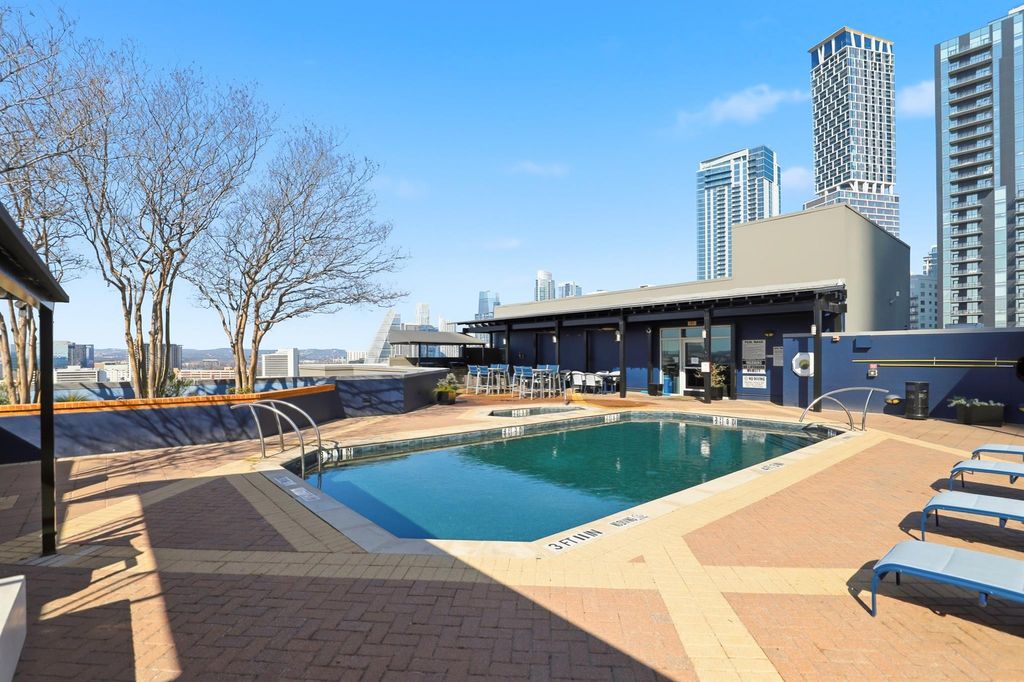 Move In Special: 2K Security Deposit *Look & Lease $1K off security deposit. 360 Degree Views of Lake, DT, Hills on Rooftop Pool & Steps to Ladybird Lake & Hike & Bike Trail w Ladybird Lake access. This unit recently renovated, designer interiors, new floors & paint offers 24 HR Concierge, secure parking, extra amenities, rooftop hot tub, fully equipped lakefront/trail fitness center and patio, club room, WiFi lounge, 3rd floor community terrace w/grill and patio seating . Unit has multiple upgrades, w no carpet, glass tile backsplash and column, recess lighting, fluted and dental moldings, faux finishes, designer frosted W/D sliding doors. Sq./Ft. w Balcony 1189 sq./ft Owner/Agent TX#569615