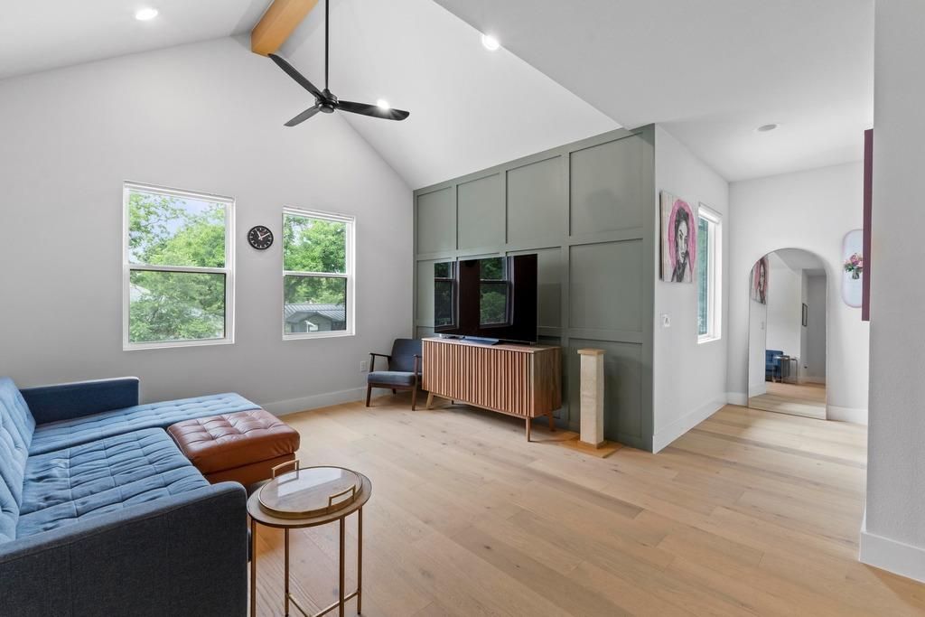Welcome to 1708 Morrow Street, a modern, better-than-new residence offering both space and sophistication in the heart of Crestview. Built in 2023 by Rivendale Homes, this thoughtfully designed property features numerous upgrades, including wide-plank wood flooring, soaring ceilings, and expansive windows that fill the home with natural light. The open-concept kitchen anchors the main living space and flows seamlessly into the dining and living areas"”ideal for both everyday living and entertaining. Step outside to a spacious, private backyard complete with a stunning pool, and ample room to add a cabana or casita, thanks to the oversized lot situated on a quiet interior section of the street. Upstairs, a generous central flex area provides an ideal space for a media lounge, playroom, or home office. The primary suite is a true highlight, featuring a vaulted ceiling, Juliet balcony, and abundant light. The luxurious en-suite bath includes a soaking tub, upscale finishes, and a massive walk-in closet. Additional features include a swing-entry two-car garage with epoxied floors, full irrigation, gutter system, and no HOA. Located just blocks from Brentwood Park and a short distance to popular local destinations on Lamar and Burnet"”such as Bufalina Due, Barley Swine, and Yard Bar"”as well as Crestview Station for quick Metrorail access to downtown Austin.