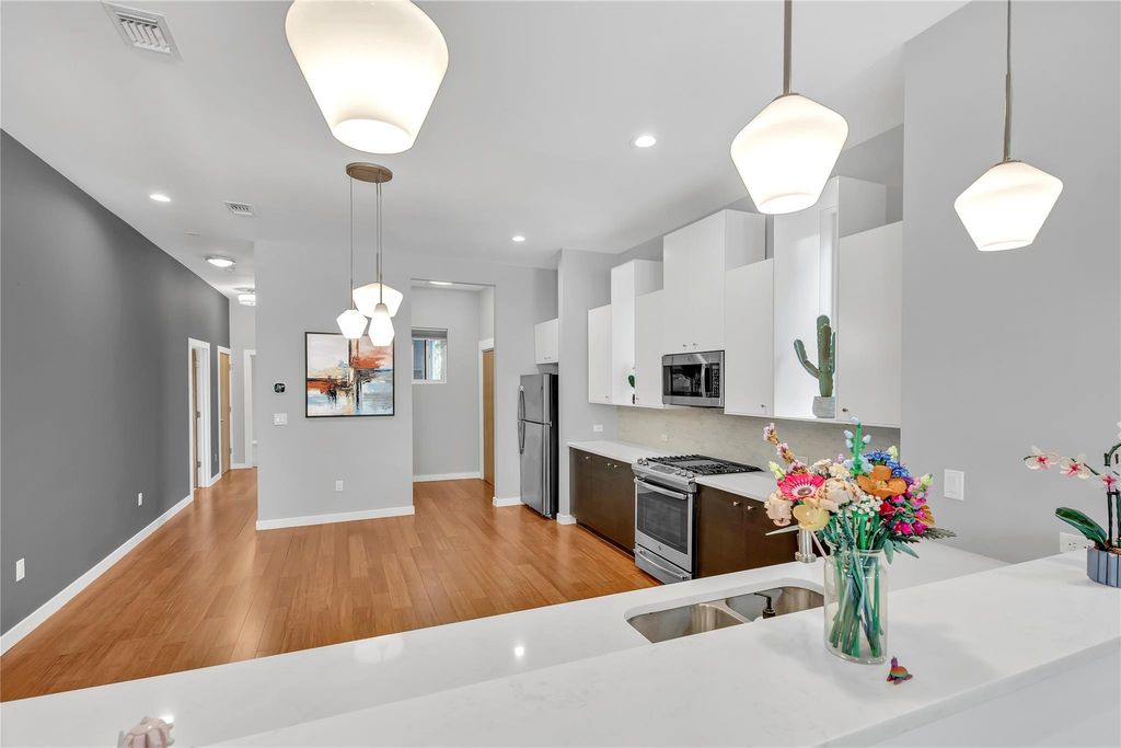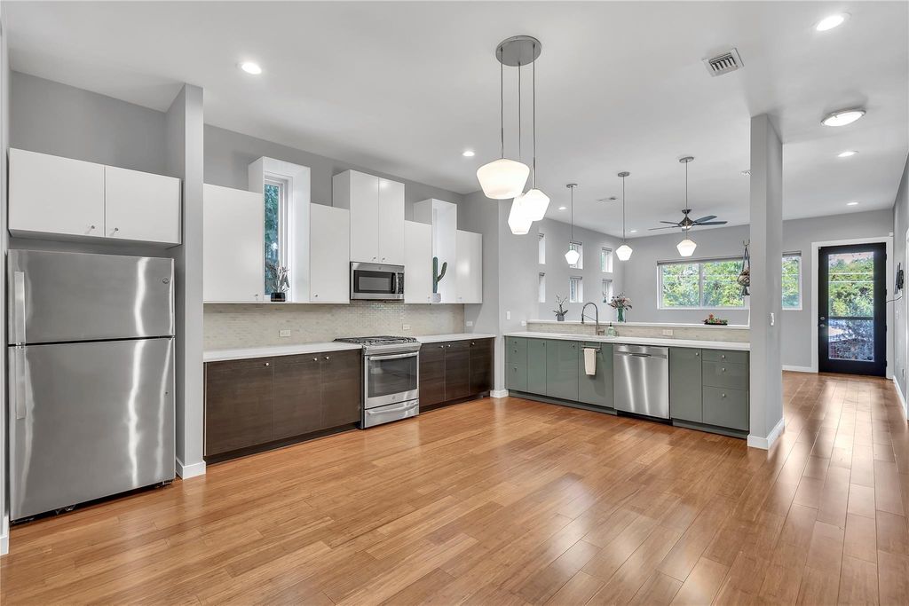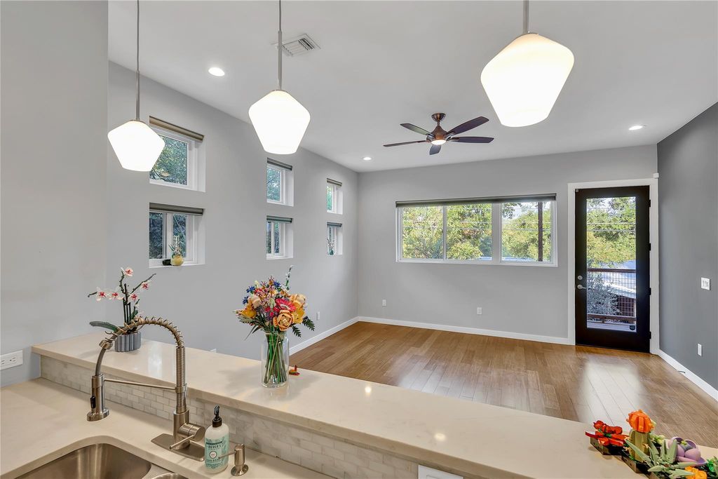DOWNTOWN VIEWS + Ample storage space! Your search for the ultimate Austin experience ends here! Welcome to your private treehouse oasis in East Riverside, a stunning 3-bedroom, 2-bath retreat that perfectly blends urban excitement with serene privacy. Your Elevated Austin Lifestyle Awaits! Step inside and be captivated by the 10-foot ceilings and an exceptional layout that flows seamlessly from room to room. The large, open kitchen is a chef's dream, ready for culinary adventures or casual entertaining. Imagine sipping your morning coffee or unwinding with an evening cocktail on your private balcony, soaking in the tranquil surroundings. The outdoor space is a fantastic spot to unwind, featuring a refreshing stock tank pool"”your secret weapon against those hot Austin summers"”and breathtaking Downtown Austin skyline views. Unbeatable Location This treehouse haven offers the best of both worlds. You're just 10 minutes from Downtown Austin's vibrant energy and only minutes away from the iconic South Congress for unparalleled shopping, dining, and those quintessential Austin vibes. Commuting is a breeze with less than 2 minutes to I-35, and you'll appreciate the close proximity to Austin-Bergstrom International Airport. Despite being moments from the city's best bars and nightlife, you'll feel completely tucked away in your peaceful sanctuary. Don't miss the opportunity to own a peaceful retreat right in the middle of all the fun and action of vibrant Austin, Texas. This unique property won't last long!