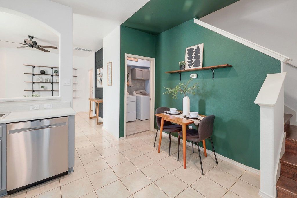Welcome home to this beautifully maintained end-unit townhome perfectly situated along a wooded greenbelt with walking trails. Step inside to discover a bright and open first floor featuring a modern living area, dining space, and spacious kitchen complete with stainless steel appliances, upgraded upper cabinets for added storage, and a walk-in pantry. A half bathroom and laundry room are also located downstairs for added convenience. Upstairs, you'll find three comfortable bedrooms and two full bathrooms, including the primary suite with a walk-in shower, separate garden tub, and walk-in closet"”a perfect retreat at the end of the day. Enjoy fresh, modern paint throughout and easy-maintenance wood and tile flooring"”no carpet anywhere! Outside, relax or entertain in your private fenced backyard with a concrete patio, ideal for morning coffee or evening gatherings. A two-car garage completes this move-in-ready home. Located in a peaceful community yet close to shopping, dining, and commuter routes"”this one has it all!