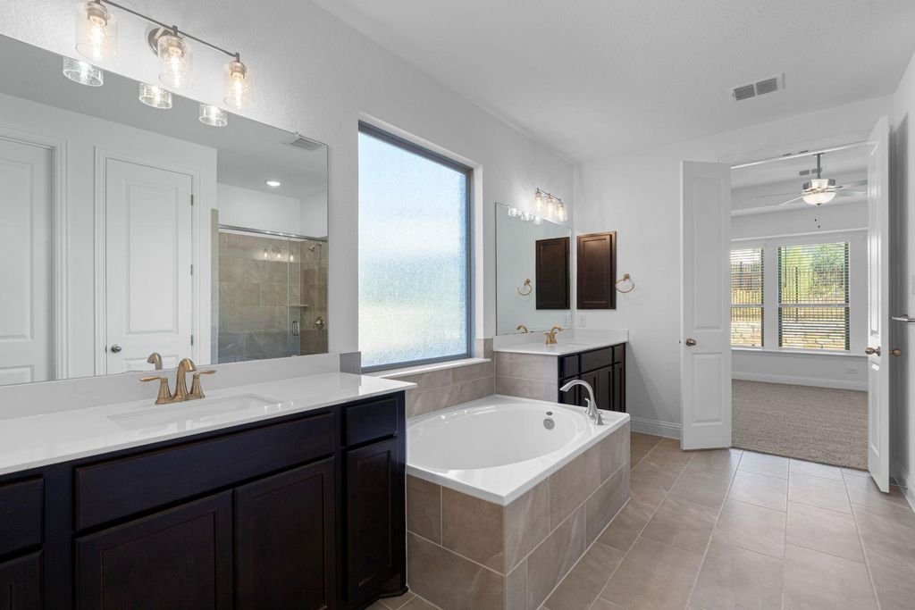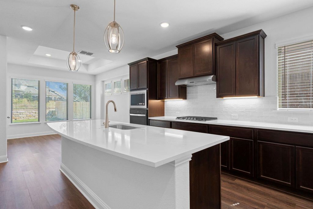 New Coventry Home! Welcome to your dream home! As you enter through the 8' entry door, you are invited into a two-story foyer, which leads past the first of four bedrooms and private study. Passing by the gorgeous curved staircase with wrought iron railing you are welcomed by a grand great area with 19' ceilings. The adjacent gourmet-style kitchen features 42" painted cocoa-colored cabinets, quartz countertops, and an oversized walk-in pantry with countertop workspace. From the connecting dining room, access the oversized covered patio overlooking a fully landscaped and irrigated backyard. Relax in the primary suite, which includes dual vanities, separate tub and shower, and a large walk-in closet. Retreat to the second floor to find two additional bedrooms, a full bath, media room and game room. Call today to learn more about this beautiful home at Lakeside at Tessera community in Lago Vista. ** Ask us about our low interest rates & special financing! Visit Onsite for details - subject to change without notice. **