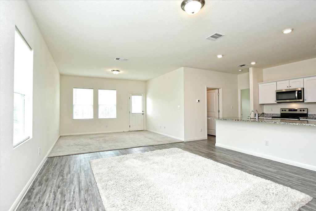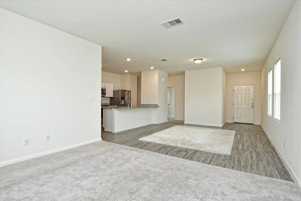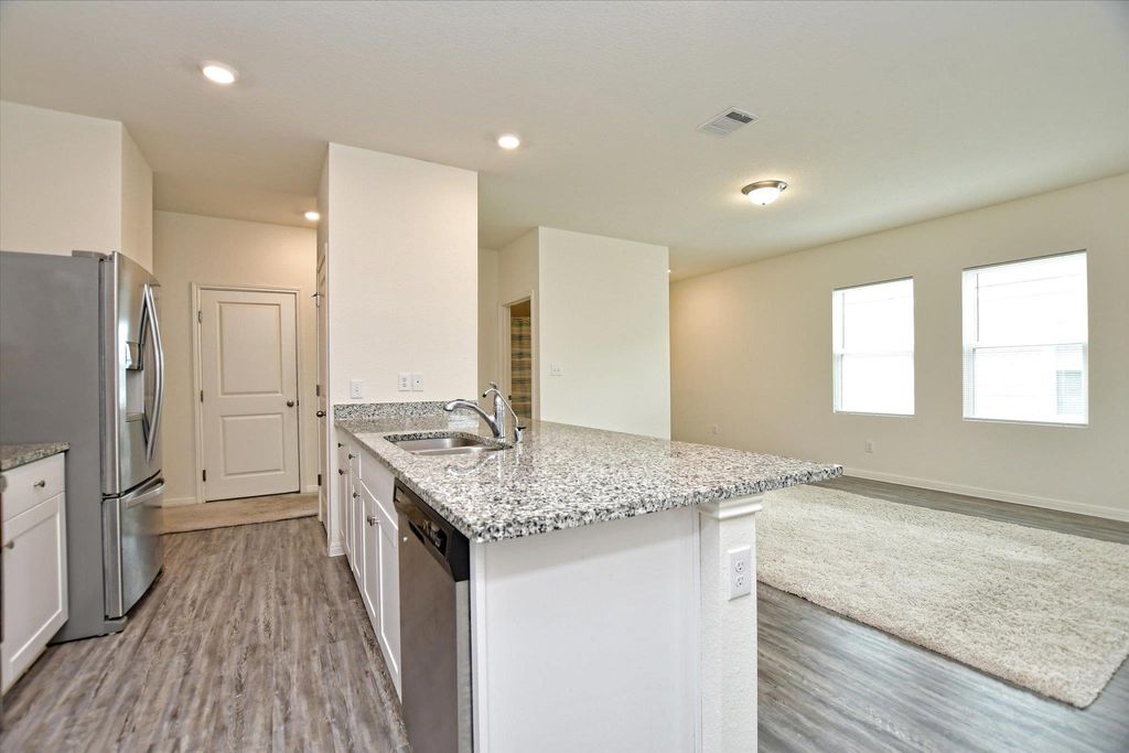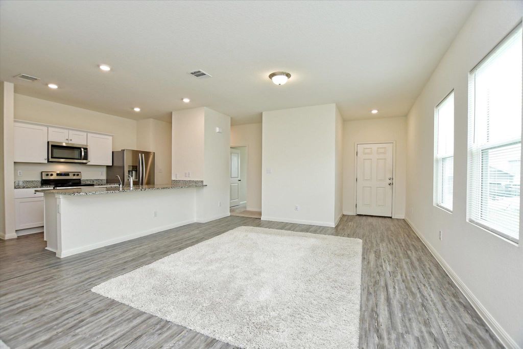Step into this delightful home featuring 3 bedrooms, 2 bathrooms, and an open floor plan that creates a warm and inviting space, perfect for everyday living. Recent interior wall paint. Nestled within a vibrant community, you'll have access to resort-style pool, soccer field, and scenic walking trails! The open-concept home features warm luxury vinyl and carpeted flooring, modern lighting, and a light-filled living room, ideal for both cozy evenings and lively gatherings. The open flow leads into a charming dining area, perfect for enjoying meals or casual get-togethers. A spacious kitchen equipped with sleek granite countertops, and stainless steel appliances. The primary bedroom offers a peaceful retreat with soft natural light streaming through large windows and an ensuite bathroom. Two secondary bedrooms, each with generous closet space and natural light, share a well-appointed bathroom. Fenced backyard with a patio perfect for outdoor gatherings. This home offers the perfect balance of comfort and convenience in a family-friendly neighborhood!