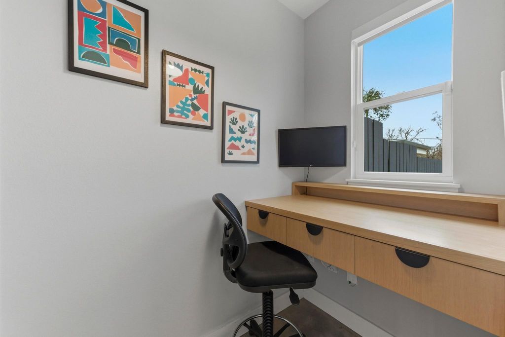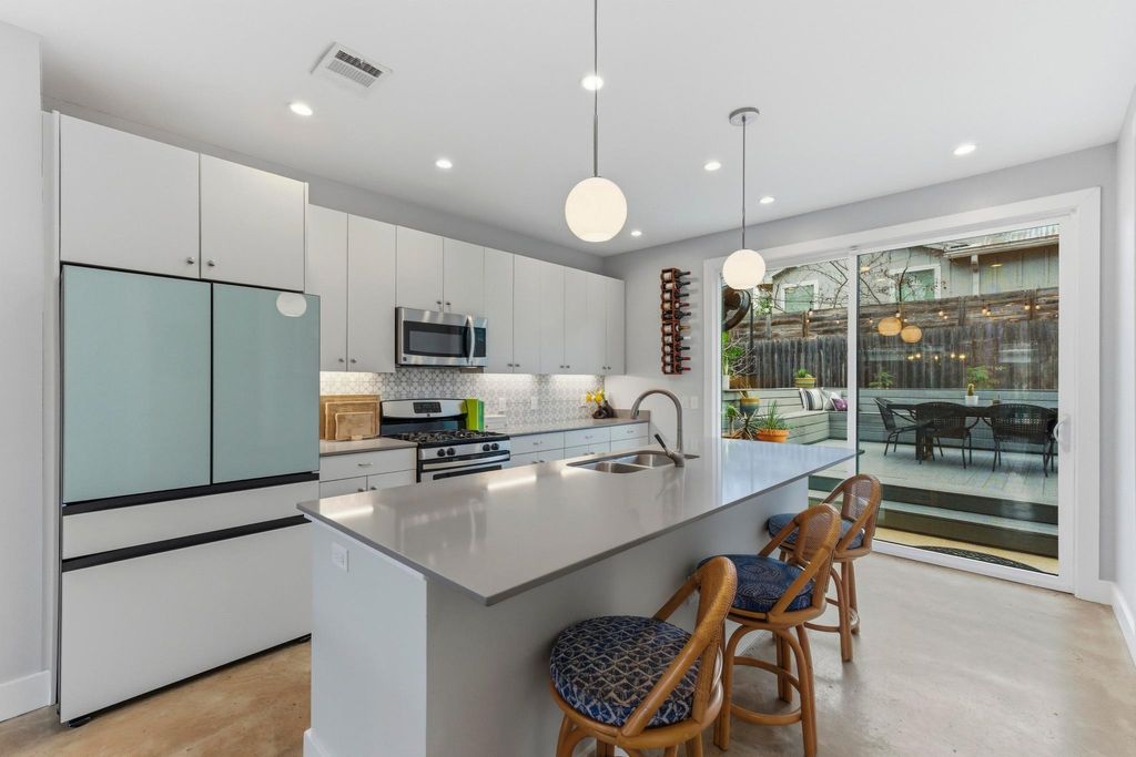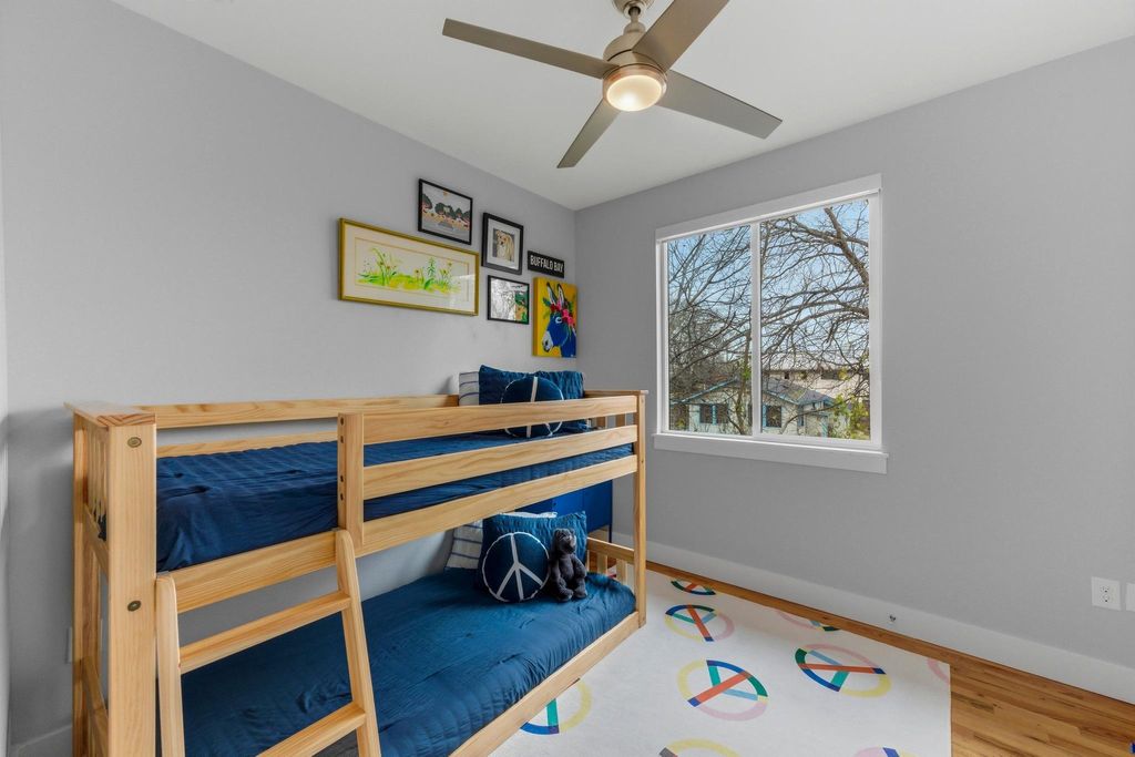 Turnkey, thoughtfully upgraded, and centrally located with great walkability! Main House- Approx 1569 Square Ft plus Casita - Approx. 248 Square Ft. per Floor Plan Graphics measurements. This meticulously maintained, custom-designed modern East Austin home lives like new with curated upgrades throughout. Could be a great lock-and-leave or Airbnb! The flexible layout offers 3 bedrooms, 2.5 baths, + smart flex spaces for everyday living & entertaining. A courtyard entry features a hip casita, professionally finished in 2024 by Parallel Custom Builders"”ideal for guests, a home office, therapy sessions, a podcast studio, a kids' clubhouse, gym, creative studio, & more! Oversized windows fill both homes with natural light. The open, main level features a spacious living area and a gourmet kitchen with quartz counters, stainless steel appliances, a large island, and generous prep space. Polished concrete floors, custom lighting, paint + custom window treatments elevate the modern vibe. A sliding glass door opens to a beautifully landscaped backyard with turf, a recently completed Trex deck, landscaping + festive, hanging cafe lights. A smartly designed, sunlit micro-office nook features a modern built-in wood desk framed by a bright window + complemented by stylish custom storage. Upstairs, you'll find 3 bedrooms and 2 full baths, including a primary suite with a walk-in closet + en-suite bath. Additional upgrades include warm hardwood floors, high-end tile from Clay Imports, a tankless water heater, new (2024) metal roof, custom leaf-guard gutters, spray foam insulation in the attic, privacy fencing, and architectural metalwork. Enjoy Mueller living without HOA fees"”walk to tons of great spots like Batch, Oddwood, Franklin Backyard, Alamo Drafthouse, Thinkery (children's museum), HEB, shopping, parks, pools, great trails, & the Sunday Farmer's Market. Easy access to bus lines that will take you to UT Campus, Downtown, and even to the Austin Airport!