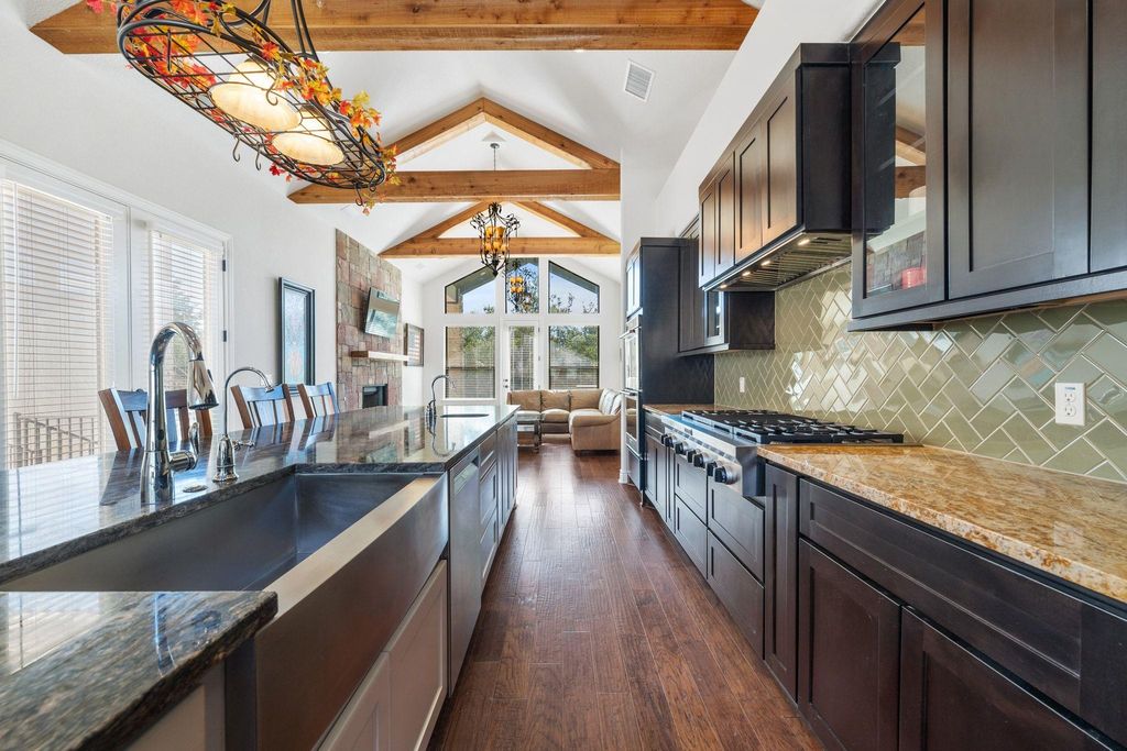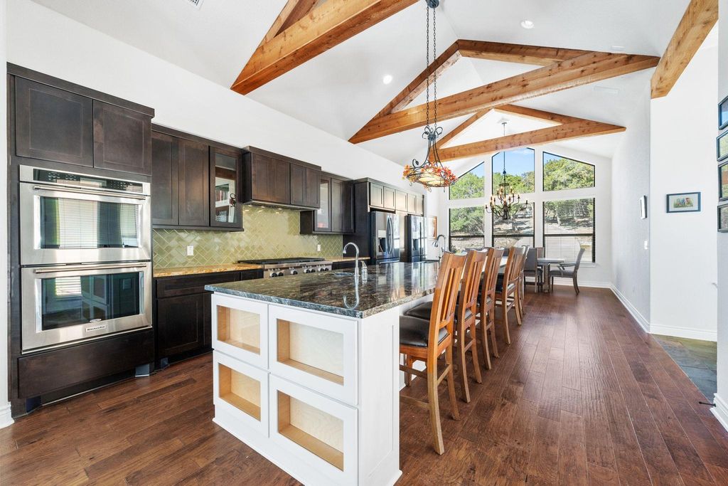 Welcome to 20607 Thurman Bend. This is a private custom built Hill Country estate that offers rare scale, seclusion, and understated confidence"”set within Angel Bay, one of Spicewood's most exclusive gated, waterfront communities. Built in 2016 this 5,730 - square-foot home is situated on 6.38 acres, providing a level of land ownership seldom found in Lake Travis-oriented neighborhoods, combining space, privacy, and long-term value. The property enjoys the security and lifestyle benefits of a gated waterfront community with a highly sought after boat slip that conveys. The home boasts five bedrooms and five and half baths, balancing comfort and functionality thoughtfully designed for both everyday living and refined entertaining. At the center of the home is the gourmet kitchen that features granite countertops, a six-burner gas range, a large center island, double ovens, and dual refrigerators and more - well suited for hosting large gatherings or family dinners with ease. The primary suite serves as a private retreat, complete with a large covered porch, luxurious bath with separate vanities, a walk-in shower, soaking tub, and an expansive walk-in closet. Owners will enjoy a dedicated office and separate media room further enhancing the home's versatility. Minutes from the Hill Country Galleria, Whole foods, Trader Joe's, fine dining and much much more, all located within exemplary Lake Travis ISD. Being the first time on the market, this is a rare opportunity for buyers who understand that the most meaningful properties are found not through volume"”but through timing and access. A must see!