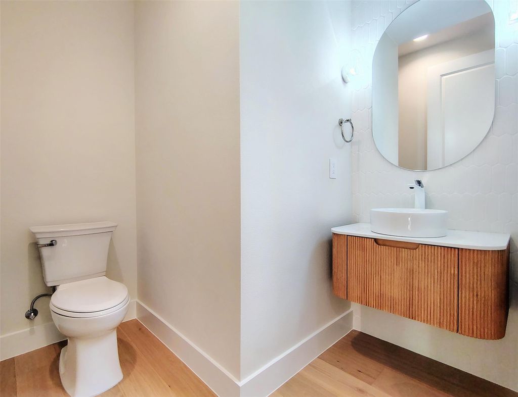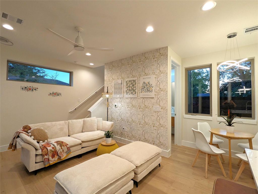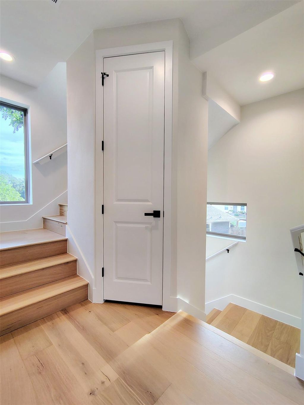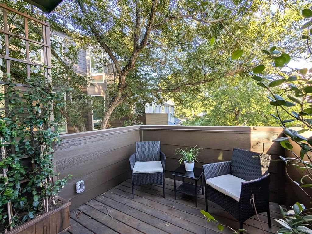 Tucked into the sought-after Park Forest neighborhood, this free-standing new construction condo home feels like a modern treehouse in the city! Expansive casement windows fill the home with natural light and frame leafy views, creating the sense of living among the treetops. The open floor plan features wide-plank hardwoods and a chef's kitchen with Samsung Bespoke appliances, quartz counters, and custom cabinetry. The owner's suite offers a private balcony perch, spa-like bath with a separate shower, and a large walk-in closet with lots of built-ins, while an additional balcony extends the indoor-outdoor flow on the third level. Modern comforts include an inverter HVAC system, EV charger readiness, and generous storage closets inside and out. Outside, enjoy mature shade trees that cover the entertainment-ready deck, and a fully fenced yard for privacy. A covered carport and low-maintenance landscaping complete this turnkey retreat. Minutes to downtown, Central Market, Garrison Park, and Austin's vibrant dining scene. The rare and advantageous 1.81% tax rate makes this home perfectly balance nature, design, and convenience.