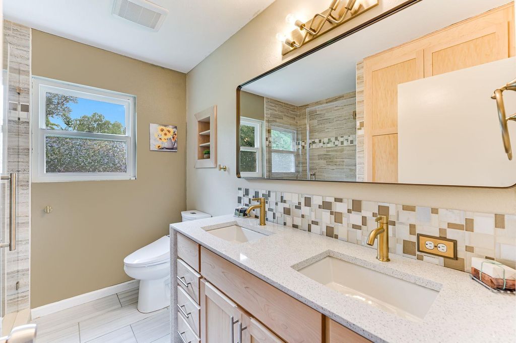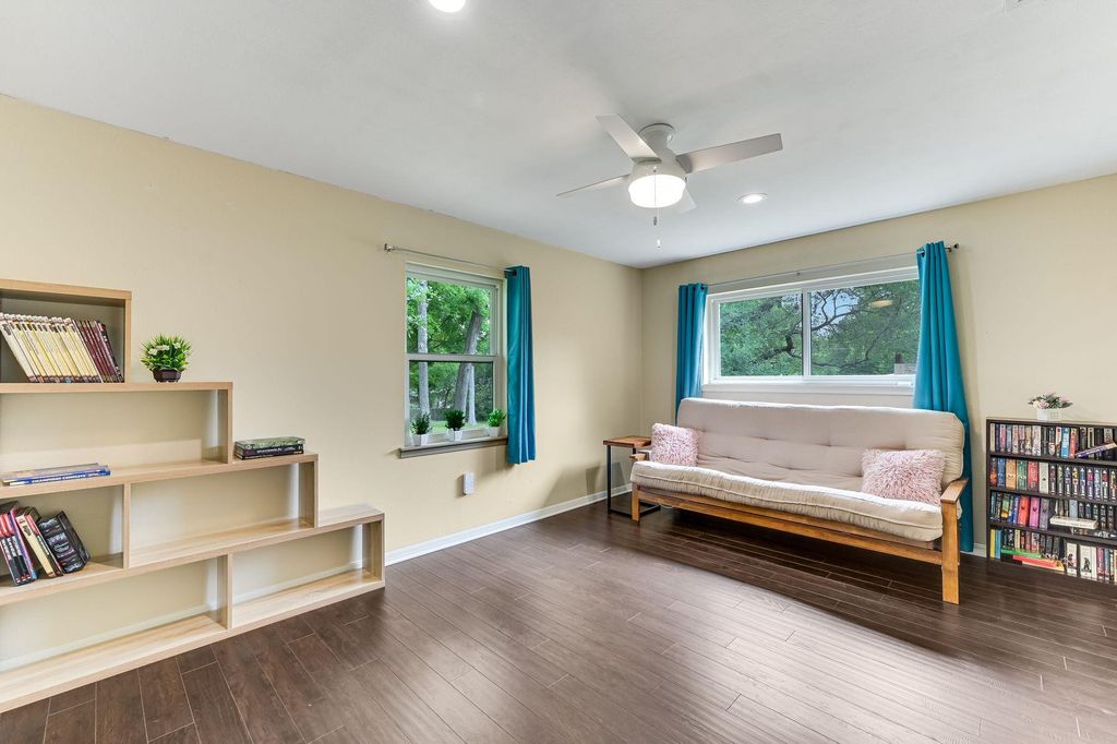 A Great Value in Gracy Woods! Discover exceptional value in this beautifully remodeled home, offering three spacious bedrooms, two updated bathrooms, and a gourmet kitchen that seamlessly connects to a large, light-filled living area. A dedicated office with built-in bookcases provides the perfect workspace, while a separate laundry room and two bay garage adds convenience and security. Step outside to a generous lot adorned with mature trees, zoysia turf grass, fruit trees, and a charming cowboy pool"”ideal for relaxation and entertaining. Energy efficiency is paramount, featuring low-E double-pane windows, solar panels, and a battery backup system. With robust internet wiring and abundant natural light throughout, this home is a rare find that won't last long!
