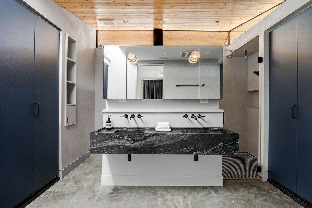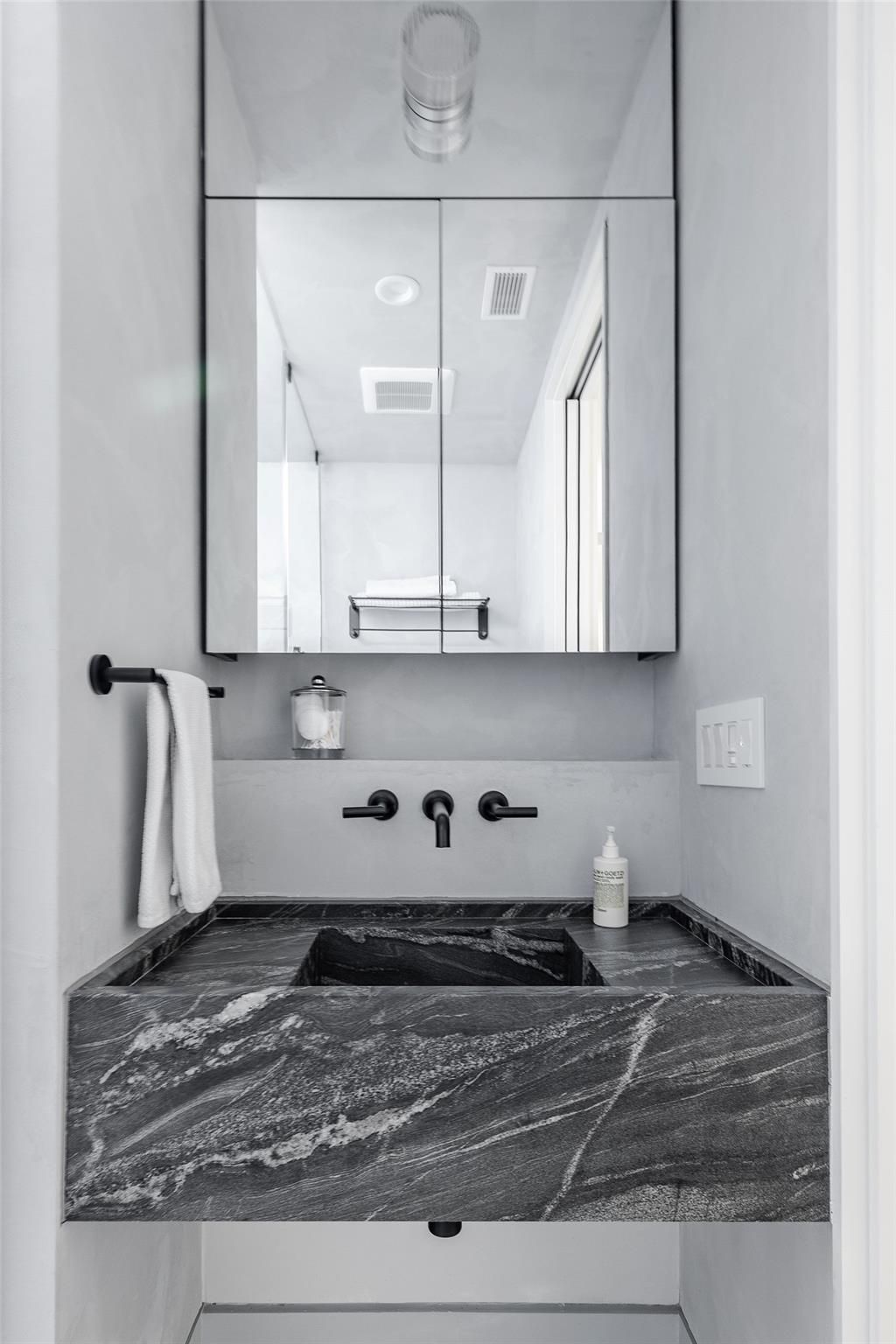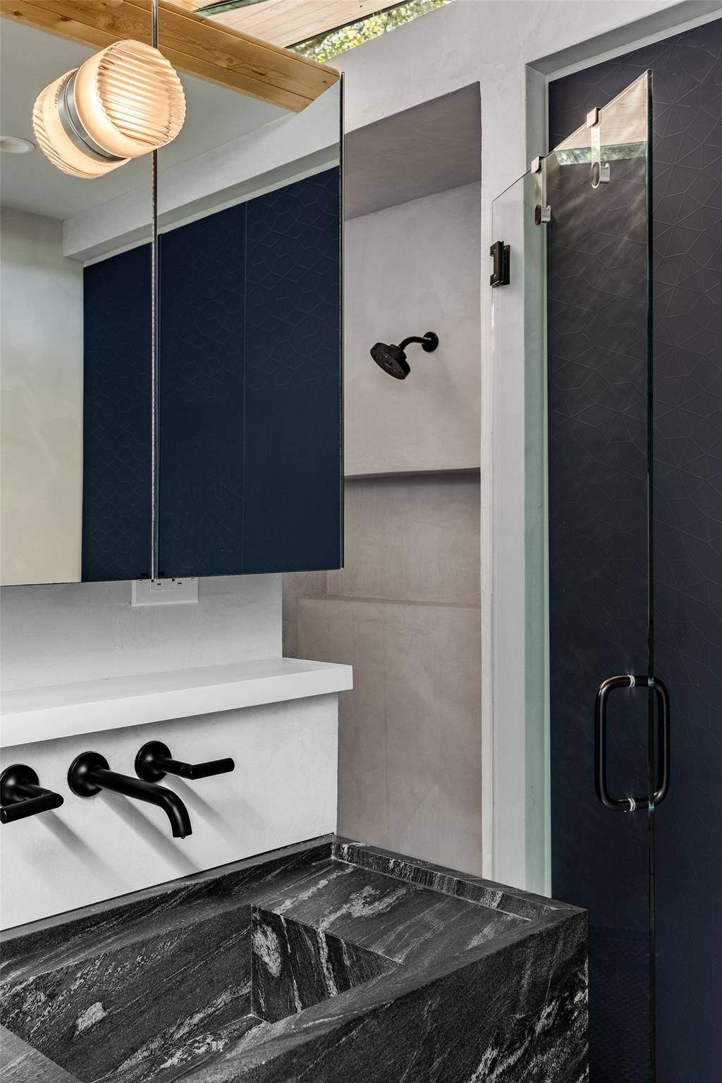 Nestled beneath a canopy of heritage Oaks and preserved Elms, this residence was transformed by the renowned Ravel Architecture, and is a bold expression of modern design, seamlessly integrating organic materials and a reverence for its natural surroundings. Tucked behind a discreet, easily-gated entrance, the home sits atop verdant grounds, offering absolute privacy just moments from the vibrant heartbeat of South Congress. An artful interplay of wood, steel, glass, and aluminum creates a striking facade that gives way to a fully enclosed patio living room"”punctuated by skylights that bathe the space in natural light. A subtle transition welcomes you into the heart of the home: a voluminous living space anchored by site-cast concrete, soaring glass walls, and a flow that fuses form and function. The chef's kitchen is a sculptural centerpiece featuring a dramatic quartzite island, custom blue cabinetry with built-in dual refrigerators, Miele appliances, wet bar and galley-style pantry. A modern utility space, elevated by floating up-lit cabinetry and frosted glass, seamlessly integrates function and design. The primary suite is a private sanctuary, set beneath an architecturally angled roofline that invites streams of light into the spa-like bath and custom walk-in wardrobe. Two additional en-suite bedrooms each extend to private outdoor patios. Throughout the home, curated touches such as floating stone vanities, warm wood paneling, and oversized built-in closets speak to an uncompromising attention to detail. Additional amenities include a two-car carport, whole-home automation, integrated surround sound, and permitted, shovel-ready plans for a bespoke pool. Perched on an oversized lot with dual access from Drake and Brackenridge Drive, this residence offers rare proximity to the Lady Bird Lake boardwalk, local parks, and the cultural pulse of South Congress"”all while delivering the quiet prestige of one of Austin's most treasured neighborhoods.