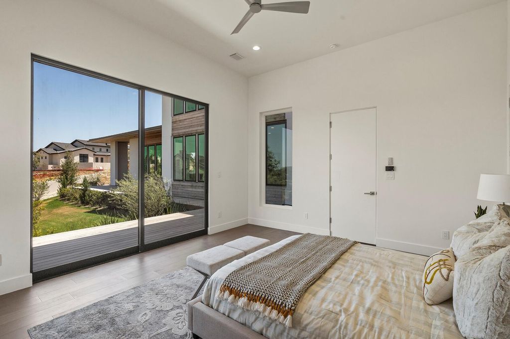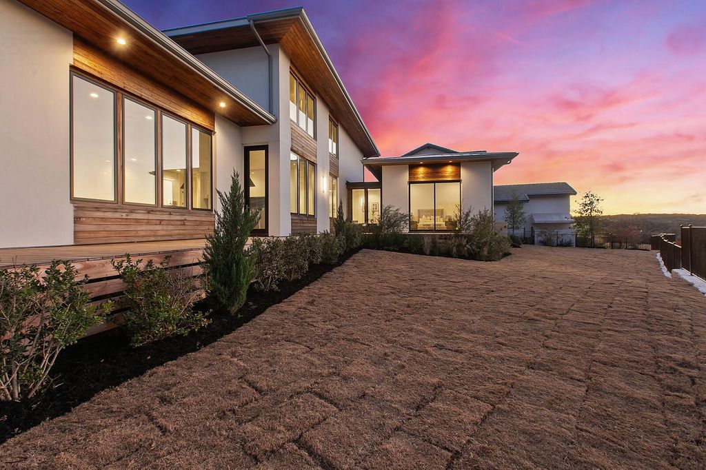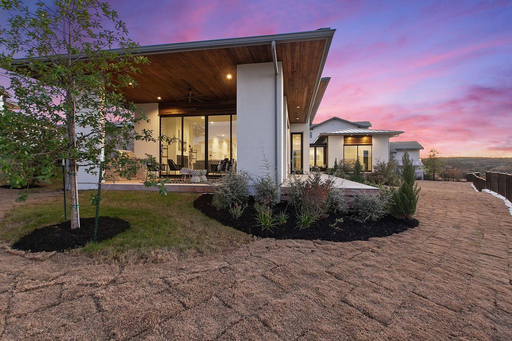 Welcome to a luxurious, low-maintenance home in the coveted Spanish Oaks community. This newly listed resale offers an ideal lock-and-leave lifestyle, showcasing modern design with wood exterior finishes and the perfect blend of privacy and sophistication. Built in 2020, the home features contemporary architectural details, with a stunning exterior and nearly 2,000 square feet of usable backyard space"”perfect for relaxation or entertaining. A substantial 10-foot retaining wall, wrought iron fencing, and meticulous landscaping ensure total privacy while preserving the spectacular, protected golf course views. Inside, the home offers soaring ceilings, recessed lighting, and expansive glass doors that flood the space with natural light. The open-concept kitchen features a waterfall marble island, sleek textures, and minimalist design elements that combine warmth and modern elegance. A spacious three-car garage offers ample storage and parking. The primary suite features oversized windows with breathtaking views, a spacious walk-in closet with a central storage island, and a luxurious ensuite bath with a soaking tub, dual shower heads, and high-end finishes. The backyard is an entertainer's dream, with a covered patio that includes warm wood ceilings and an industrial ceiling fan"”perfect for enjoying morning coffee or evening cocktails while taking in the panoramic golf course views. All the amenities of Spanish Oaks are yours to enjoy"”from miles of walking and biking trails to the sparkling pool and pavilion. Add a Golf Club membership to access world-class golf, tennis, and more. With its modern finishes, prime location, and elevated living experience, this home offers the perfect balance of privacy, convenience, and luxury in one of Austin's most desirable communities.