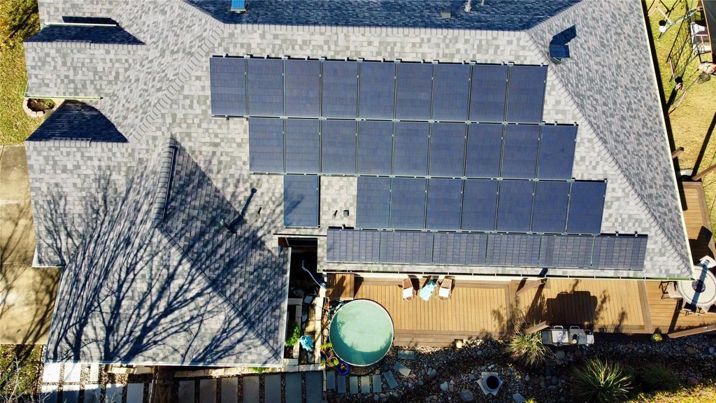 Upgrades! Energy-efficient 3BR/2BA home with 3-car garage in Pflugerville! Features include a fully paid 13.12kW solar system averaging ~17 MWh/year, new 30-year architectural roof (2023), Carrier Greenspeed HVAC, whole-home filtration and water softener, and connected home upgrades throughout. The updated kitchen with gas GE Café range, farmhouse sink, Delta touch faucet, beverage/wine fridge, all-drawer cabinetry, and modern lighting. Bathrooms updated with matching cabinetry and concrete sinks. Showstopping media room with 110" screen wiring and custom hidden bookcase door. The backyard oasis includes Trex deck, cowboy pool, rock stream, garden beds, sprinkler system and St. Augustine grass. Fresh interior paint (2025), exterior paint and gutters (2023), LED lighting, dimmers, USB/USB-C outlets, fiber-ready wiring, and EV charger (negotiable). Not a cookie-cutter"”this one stands out.