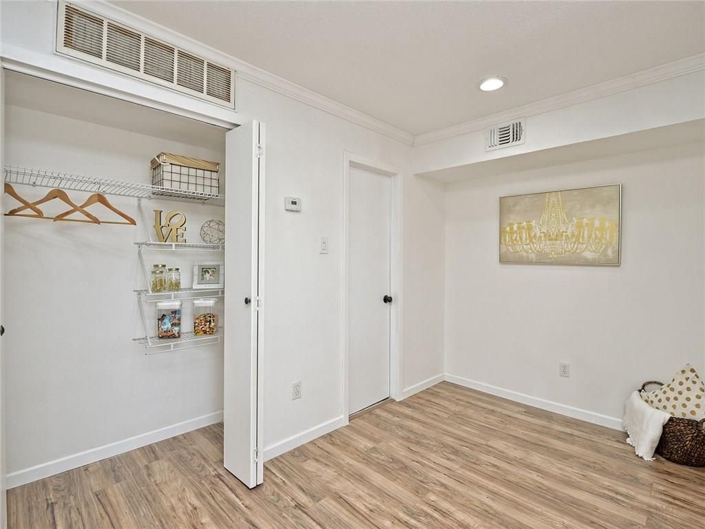 Fully renovated and ready for move-in. Updated flooring, cabinetry in kitchen & bath, lighting, fixtures, interior paint, crown molding, and HVAC. Kitchen features corner cabinets and great storage. Unit is pre-wired for Google Fiber), less than 1.5 miles to Lady Bird Lake & Oracle Campus, and a jump over to 78704 or Downtown! Relax with friendly neighbors at community pool. UT Shuttle, Metro, and airport are easily accessible. Water and trash are included in the HOA fee. Includes stackable washer/dryer in unit and does convey.