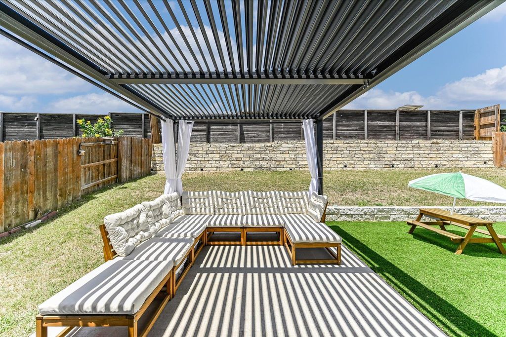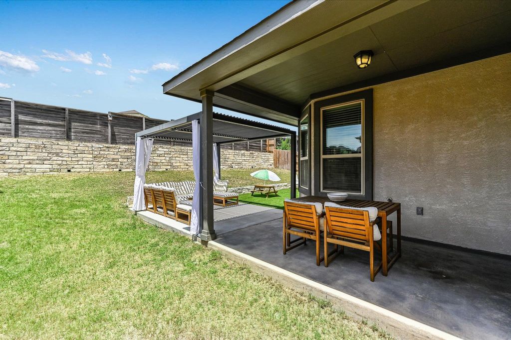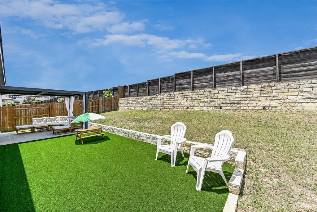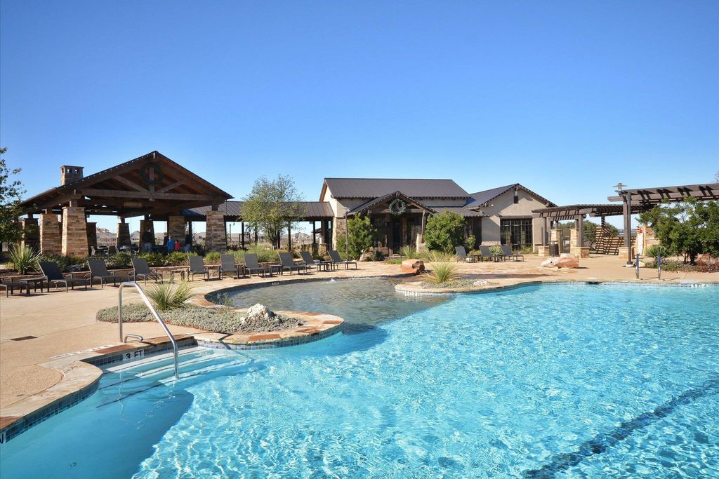 Located in beautiful Sweetwater, this single story home is meticulously maintained and ready for move in! Enjoy summer breezes on the large front porch or extended covered back patio overlooking a turfed play area and fenced back yard. Light and bright and filled with designer touches throughout. Three bedrooms, each with walk-in closets plus a study. Open kitchen features granite counters, a tile backsplash and stainless appliances. Custom lighting and a water softener too! Community pool, clubhouse, trails, fitness and more. Lake Travis Schools!