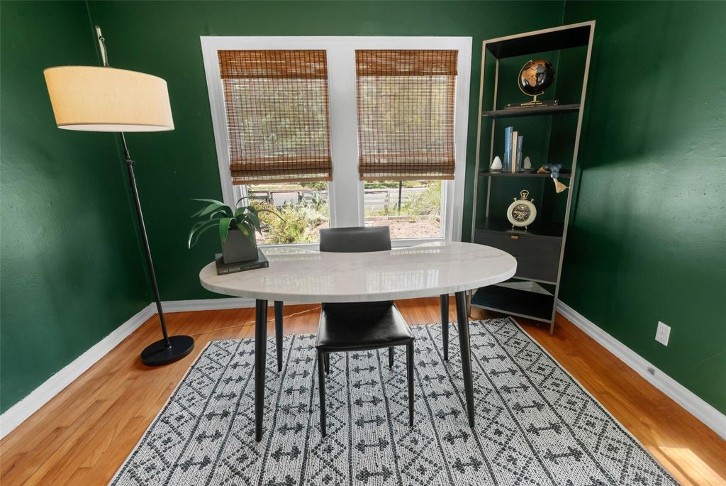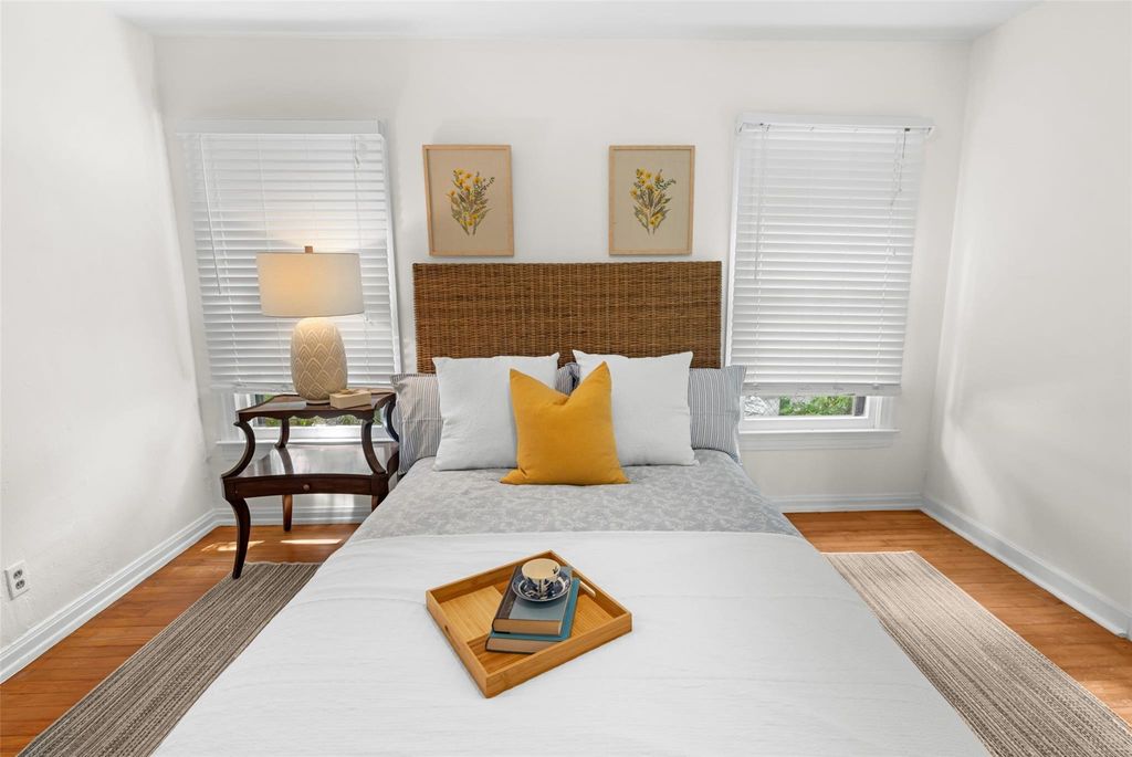 Welcome to 2108 Rountree, a classic charming bungalow in the urban hotspot of Manor & Airport. This location is walkable & bikeable to numerous hotspots with easy access to thoroughfares in East Central Austin. Classic wood floors throughout the living & bedrooms with architectural window screens add to the 1940's charm. Both bedrooms are sizeable with larger closets than are typically found in these older homes. The backyard features towering trees and privacy that backs to a heavily wooded yard that is home to owls, hawks, herons, and tons of songbirds. The native landscaping also attracts tons of hummingbirds and butterflies. This bungalow has a fully fenced in front yard with a Texas native garden that is beautiful yet quite easy to maintain. Owners have sketched out a plant map that is available in the house. Other notable updates include: HVAC approx 5 years old, Roof replaced in 2024, plumbing under house is PVC & french drain. Additional storage available with a shed that will remain at the end of the driveway. Available to the buyer is an elevation certificate and approx insurance quote of $700 as the annual premium. Please note this home never had water intrusion during owners lifespan in the home nor has it happened prior to their ownership. Owners will provide a detailed and thorough pre-inspection that's located online. Many items in pre-inspection were addressed and noted in the report. Please review documents on the MLS and reach out to agent with any questions.