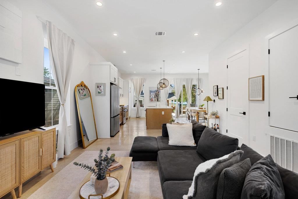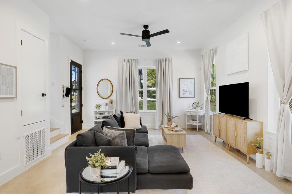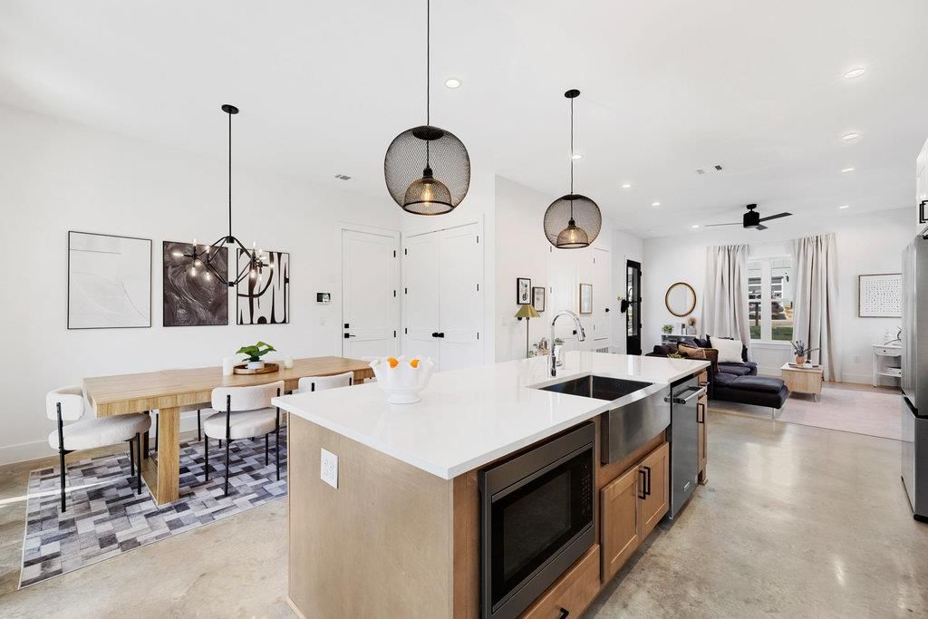 Located in the heart of East Austin, this contemporary 4-bed, 3.5-bath home blends modern design with effortless access to the city's best dining, shopping, and outdoor spaces. High-end finishes feature a sophisticated black-and-white palette, warmed by natural wood cabinetry, wood flooring in the bedrooms, and smooth concrete floors in the main living areas. The open-concept layout connects the living, dining, and kitchen spaces, filled with natural light from nearly floor-to-ceiling windows and recessed lighting throughout. The stylish kitchen showcases a large white quartz island with striking black mesh pendants, stainless-steel appliances including a gas range and built-in microwave, and a farmhouse sink"”perfect for entertaining. Upstairs, the expansive primary suite offers a large walk-in closet, accompanied by two additional bedrooms and baths. The third-floor loft provides flexible space for a bedroom, office, or studio. Enjoy an elevated covered patio overlooking a spacious yard ideal for gardening, play, or pets. A home automation and security system add convenience and peace of mind. Nearby green spaces such as Bartholomew District Park and Little Walnut Creek Greenbelt offer trails, sports fields, and shaded picnic areas, while Mueller Lake Park"”with its scenic paths and weekend farmers' market"”is just minutes away. Food lovers will appreciate proximity to East Austin favorites like La Tunita 512, Bird Bird Biscuit, and Dai Due, plus coffee shops, food trucks, and shopping at Mueller's Aldrich Street district or The Domain for upscale retail and entertainment. With its ideal mix of modern comfort, local flavor, and outdoor recreation, Masonfield delivers the quintessential East Austin lifestyle. (Arctic Warrior Plunge tub on back patio does not convey.)